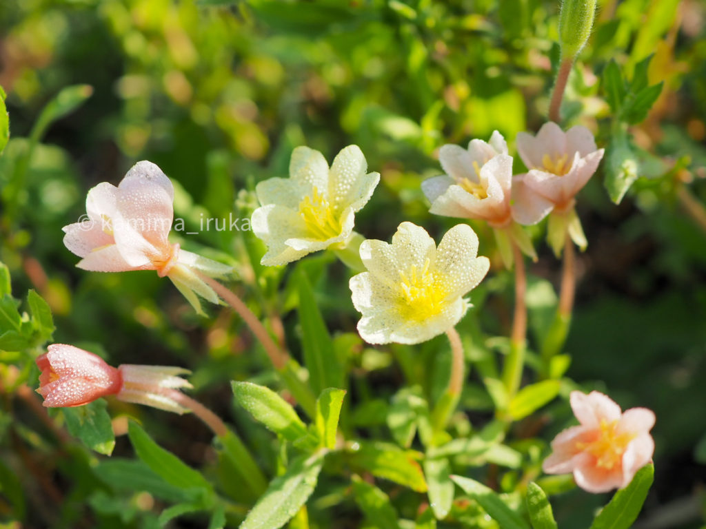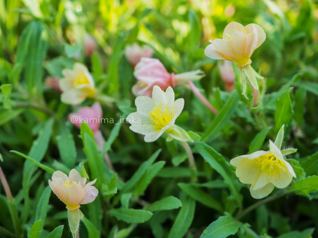 kamima_iruka 2024-06-14 コマツヨイグサの花。蕾の時はベージュがかったピンク色で、開いてくるとイエローに変化するようです。パステルカラーのグラデーションが夢かわいい…! これはヒメヒオウギズイセンかな?いつも斜面の藪に咲いているので、撮るのがちょっと難しいです。そろそろ開いてきそうで楽しみ…! たまには、蜘蛛以外の昆虫も撮ったりしてますよ! ← 2024/06/12 あささんぽ 2024/06/17 あささんぽ →