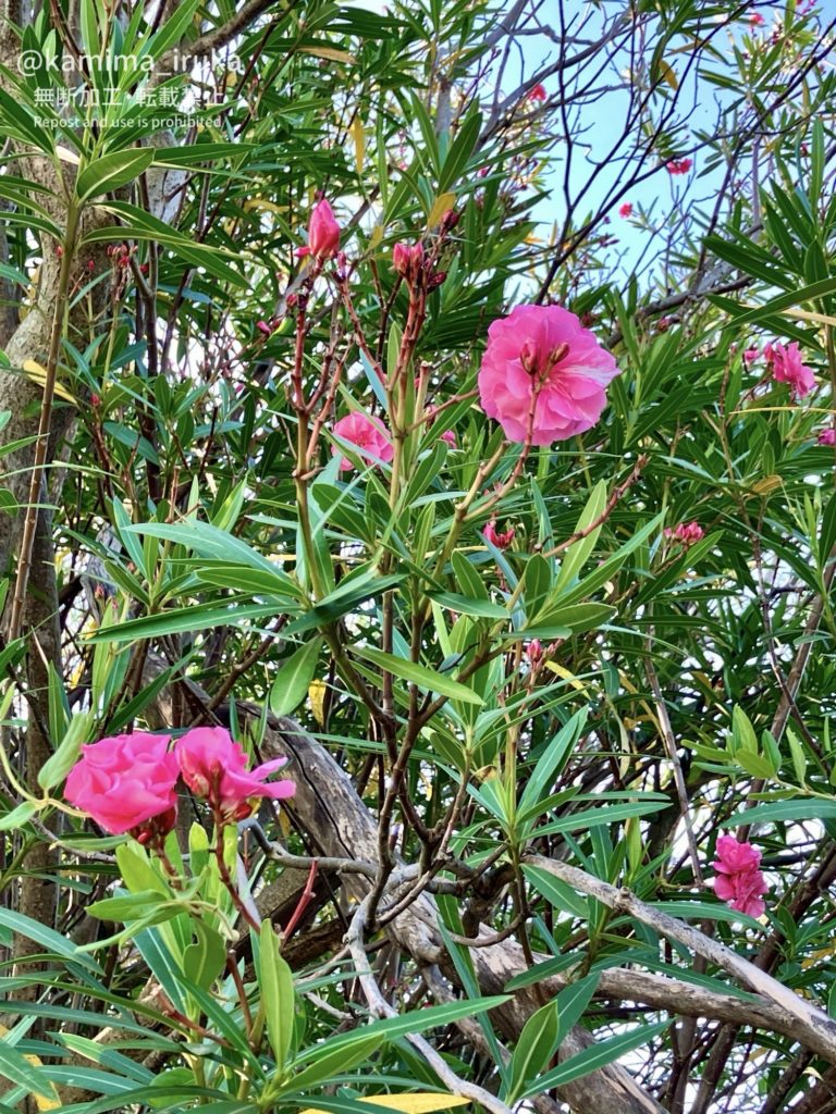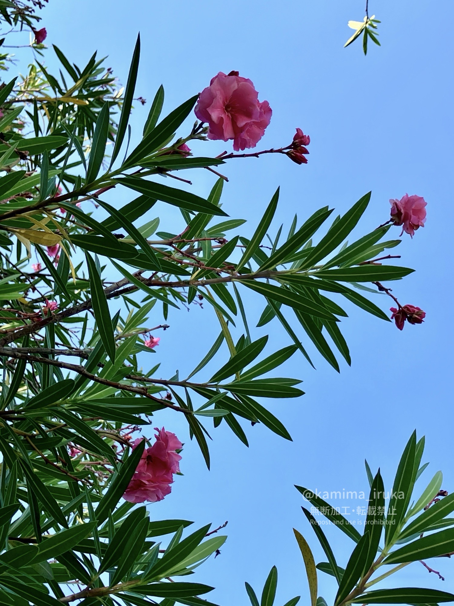 kamima_iruka 2024-07-28 チョウチクトウの花が開き始めておりました。とても綺麗だけども、迂闊には触れられない毒木というのがまた魅力的…! 夾竹桃は「燃やす時に出る煙を吸うだけで有害」と聞きますが、実際のところどうなんでしょうね。キャンプファイヤーで間違えて焚べてしまった人がいるとか、バーベキューの時に、火箸や串代わりに使った人が中毒になったとか…さすがに自分で試そうとは思えませんが…。 ← 2024/07/27 あささんぽ 2024/07/29 あささんぽ →