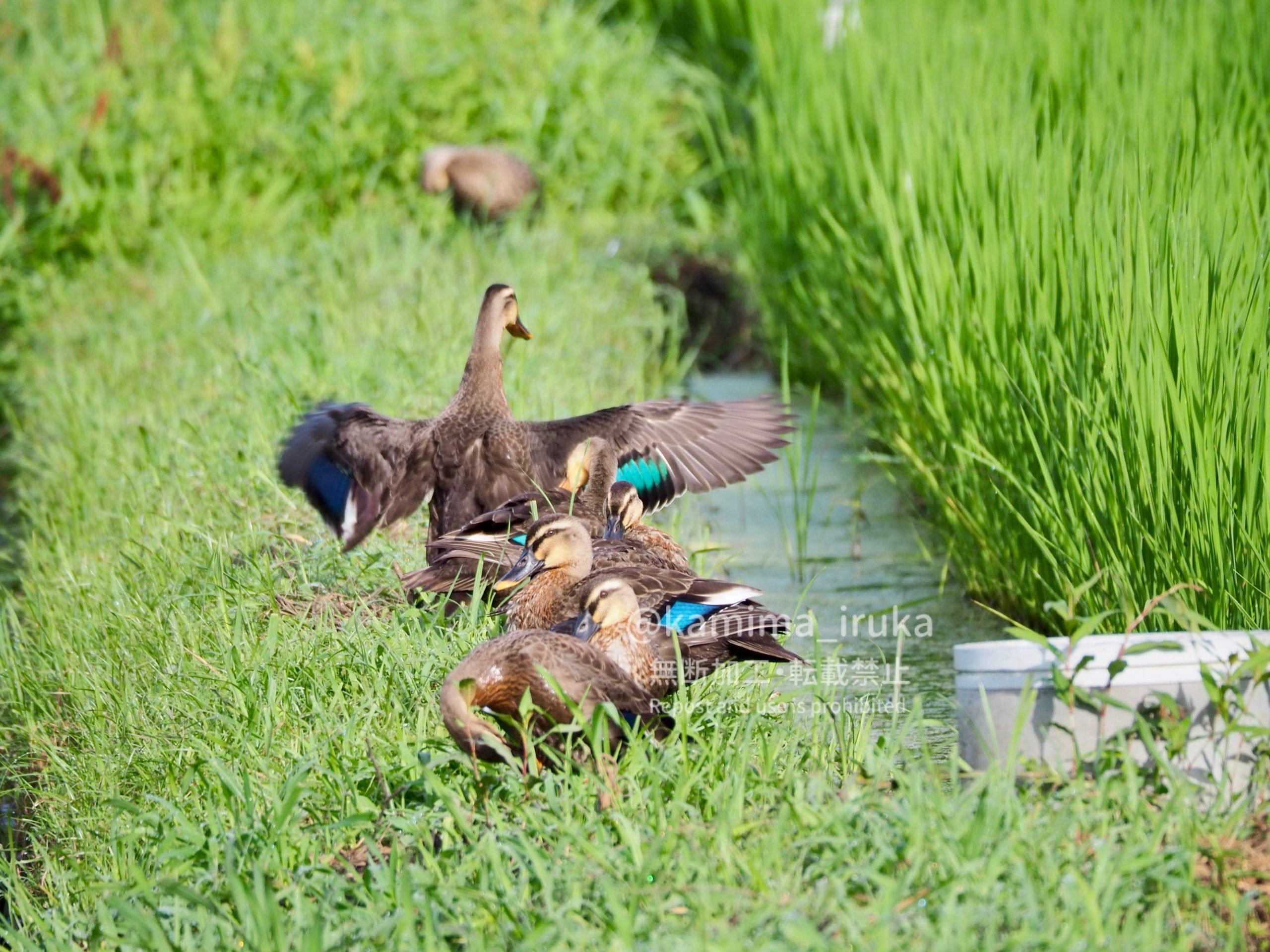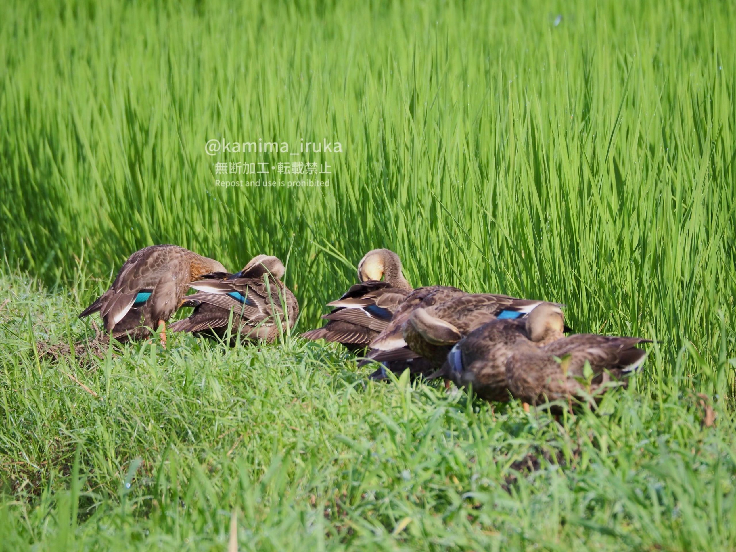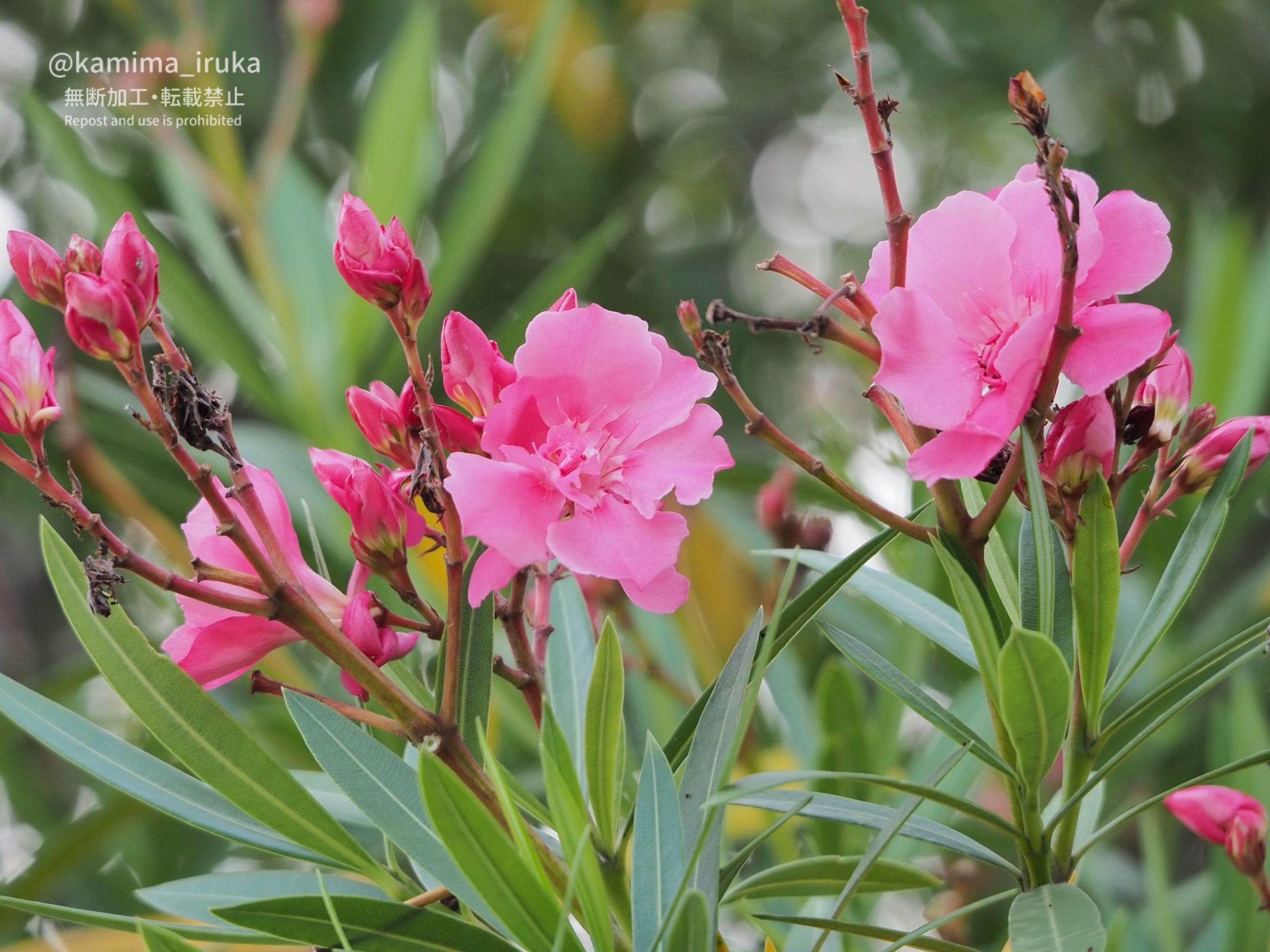 田んぼで休憩中のカルガモたちを見つけたり、昨日見つけたキョウチクトウの花を、ミラーレス一眼で撮り直したりしました。