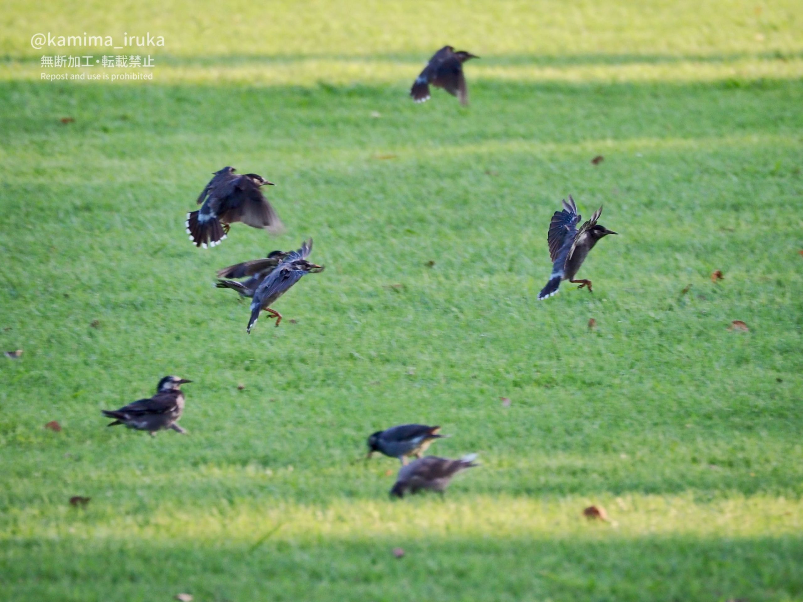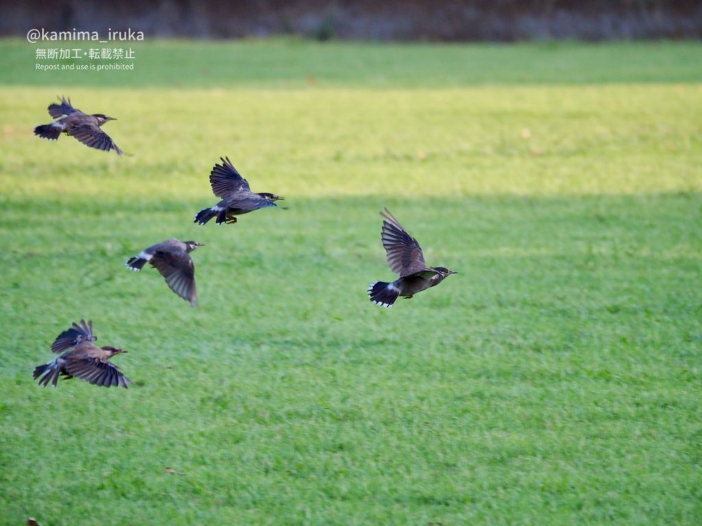 雛ちゃんは4羽かな? 親鳥に形は似ているけれど、大きさや羽色が違って面白いですね。