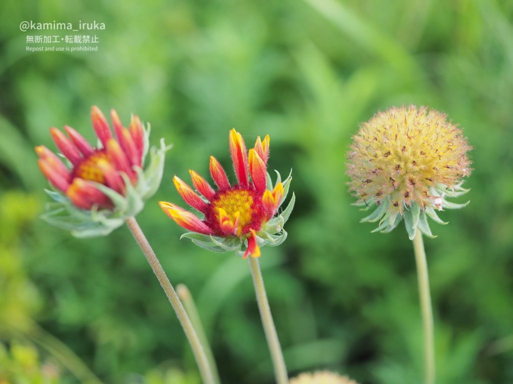 テンニンギクに、まんまるぽわぽわの実がついておりました。