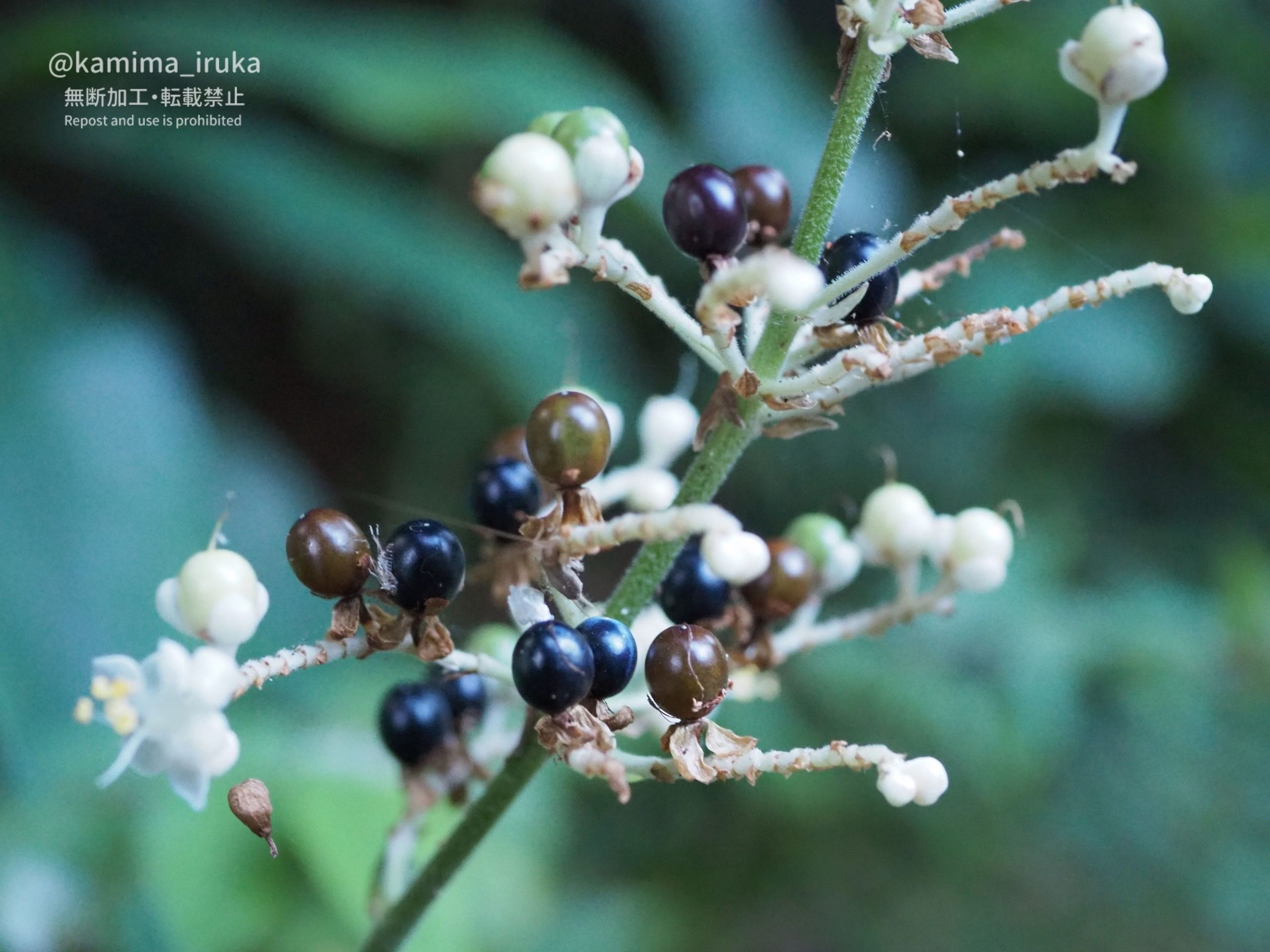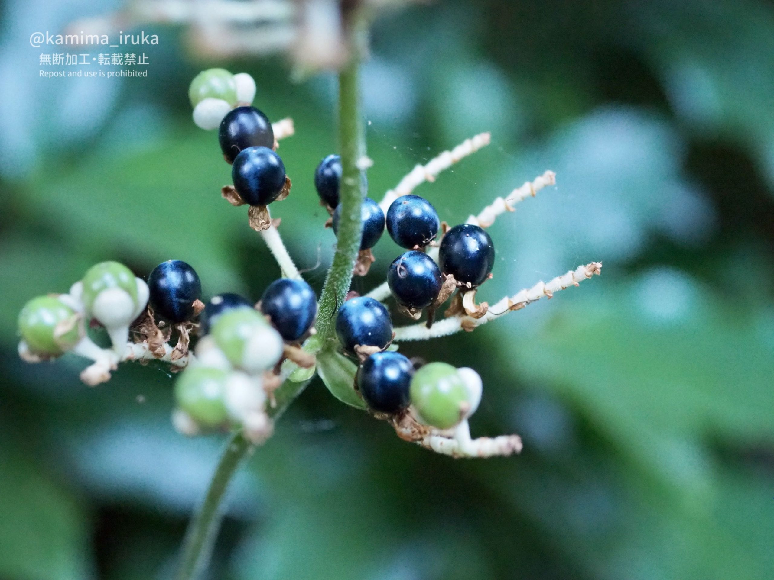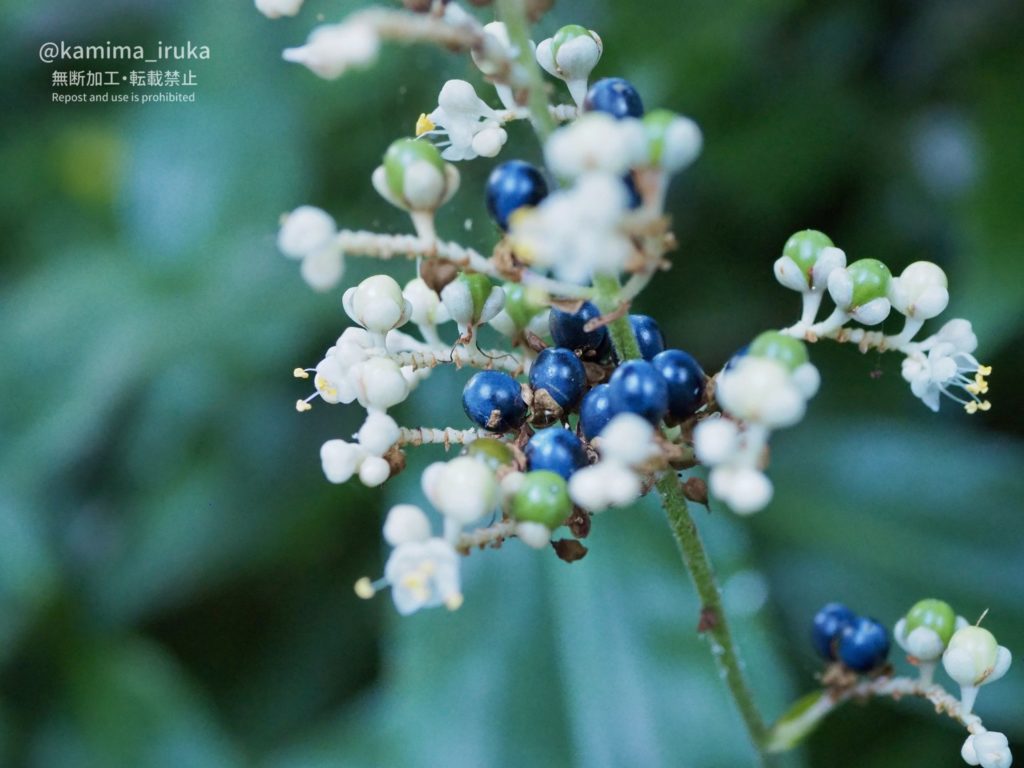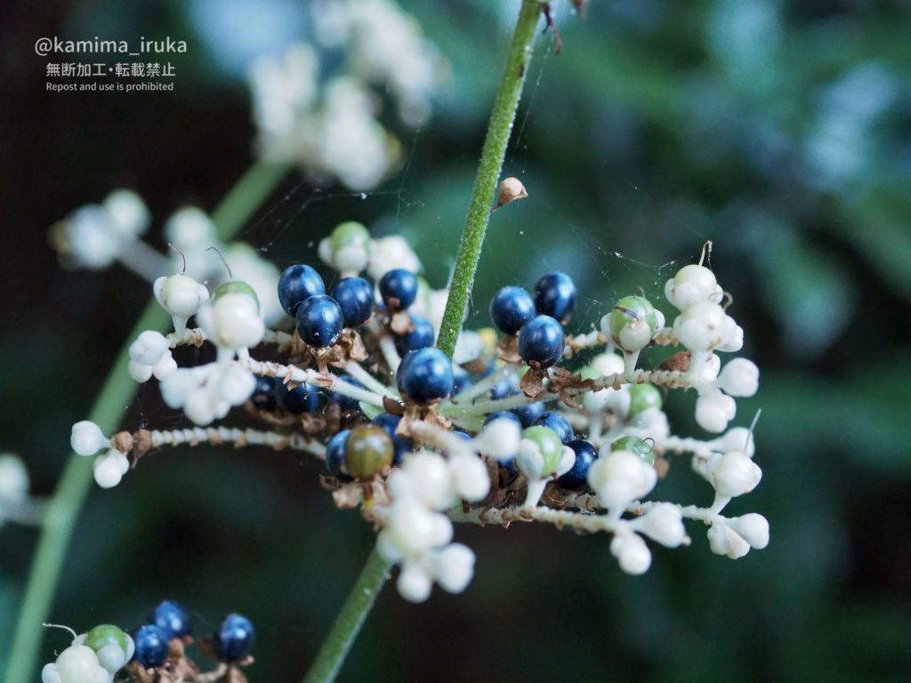 ビーズのようなツヤツヤの実が、白→薄緑→薄茶→茶→紺→藍紫…と変化していくのを見るのが楽しいです。