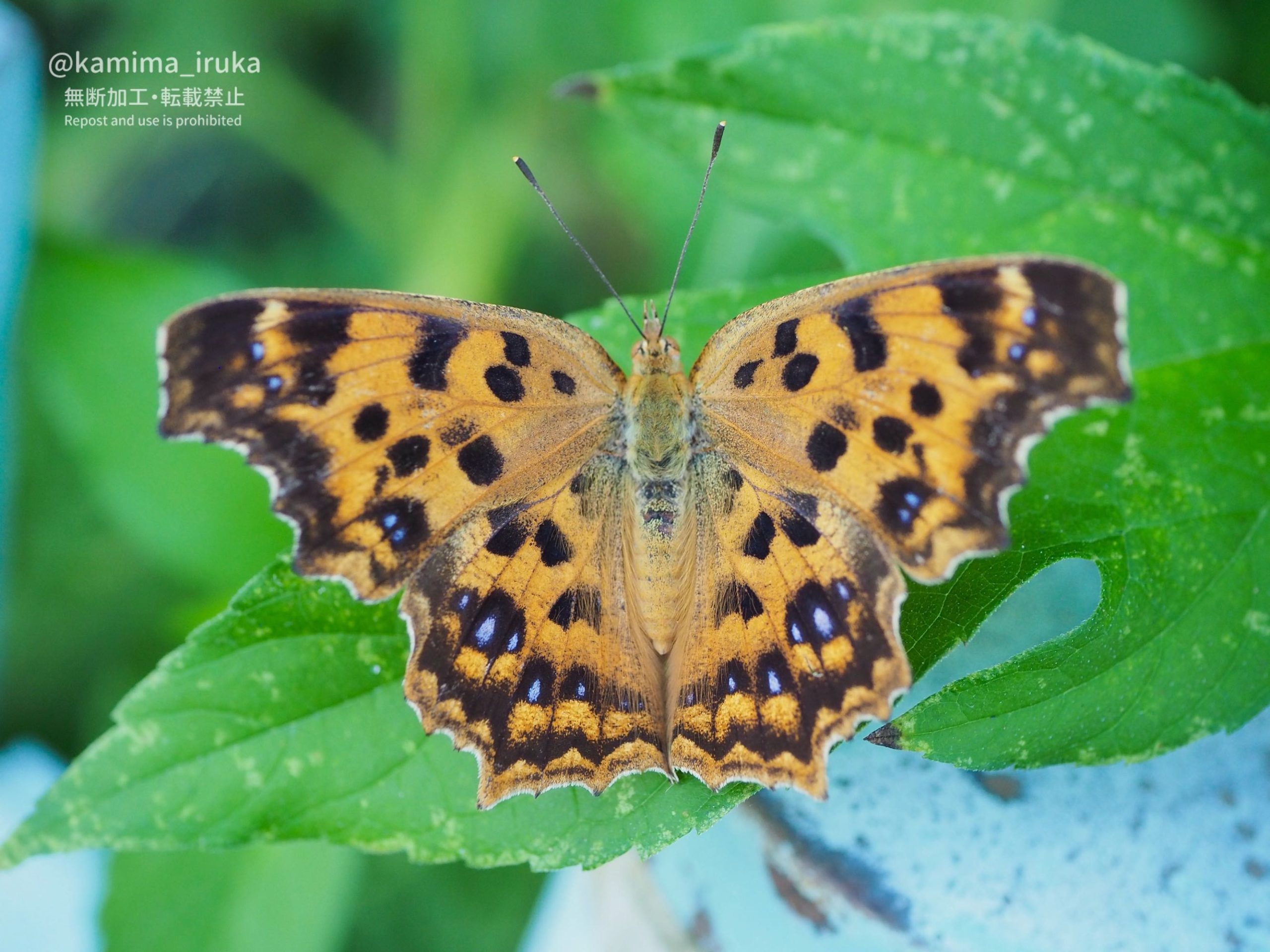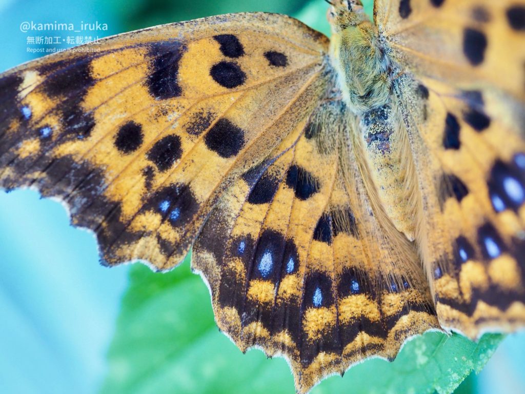 青紋も黒紋もクッキリと美しい翅を、マクロレンズでしっかり撮影させてくれました。