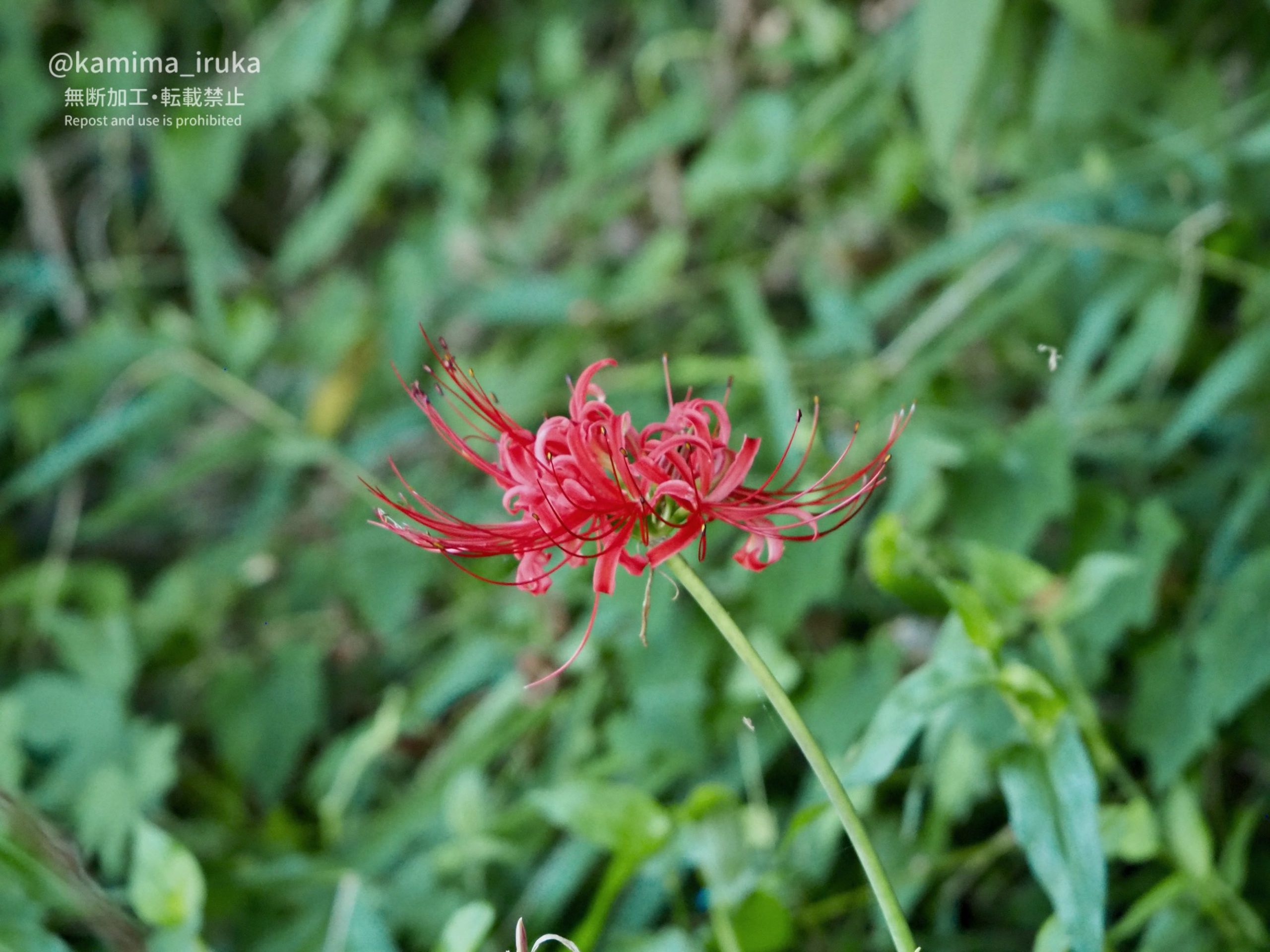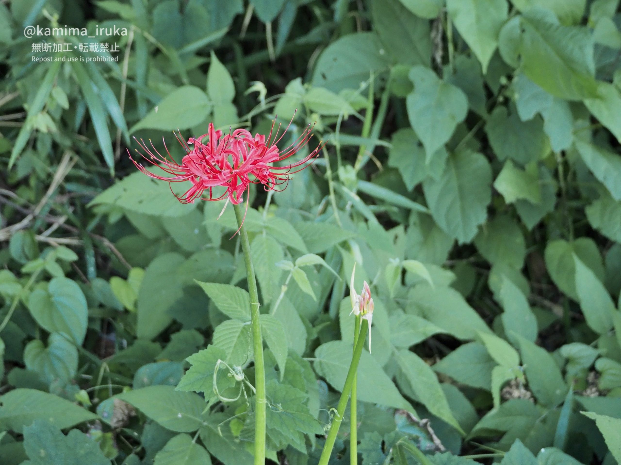 藪のなかに一輪だけ、ちょっと気の早いヒガンバナが咲いておりました。