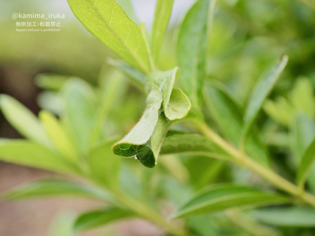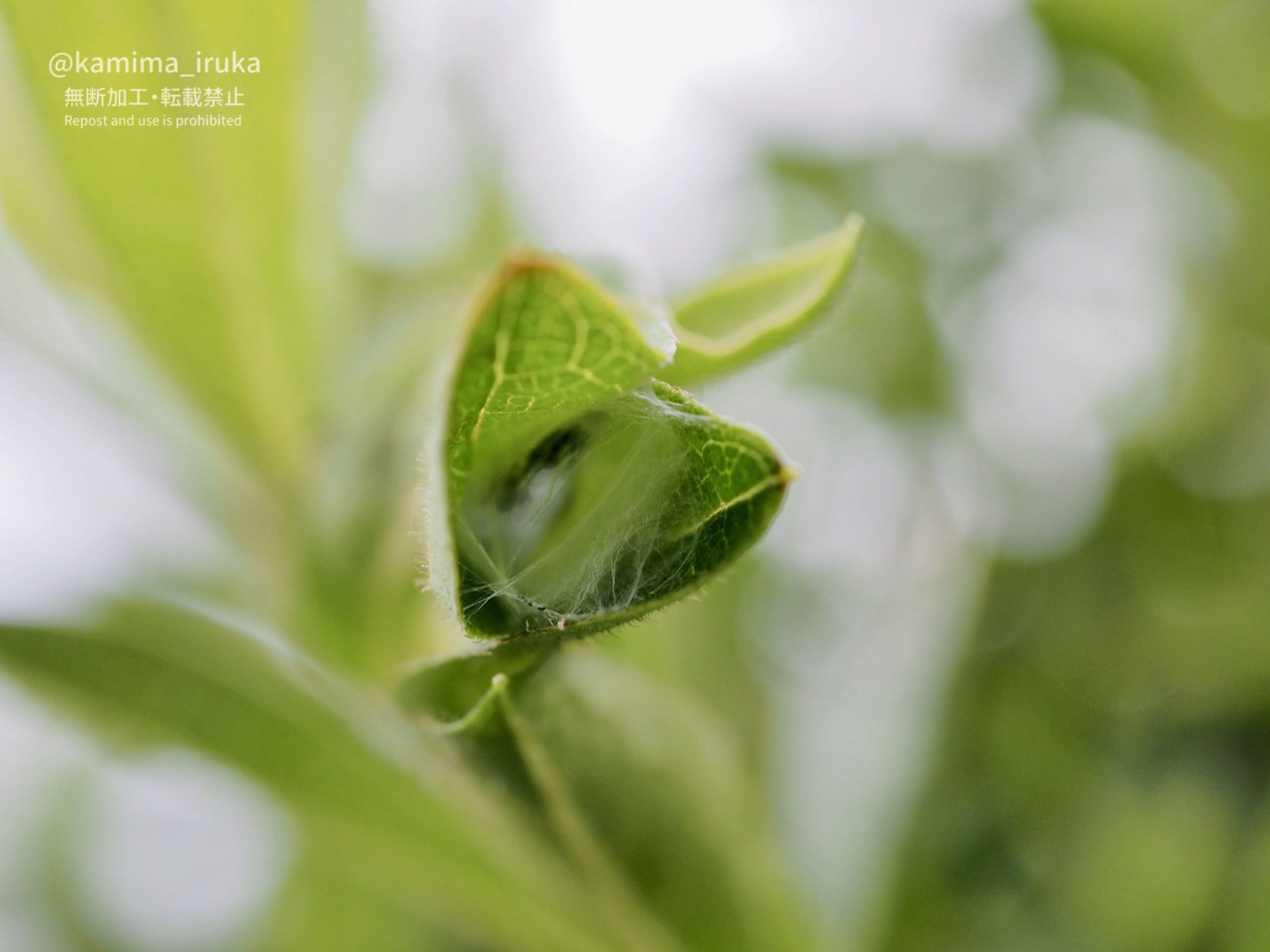 2枚の葉を筒状にあわせたうえに、もう1枚の葉っぱで屋根を作っているようです。賢いなあ〜
