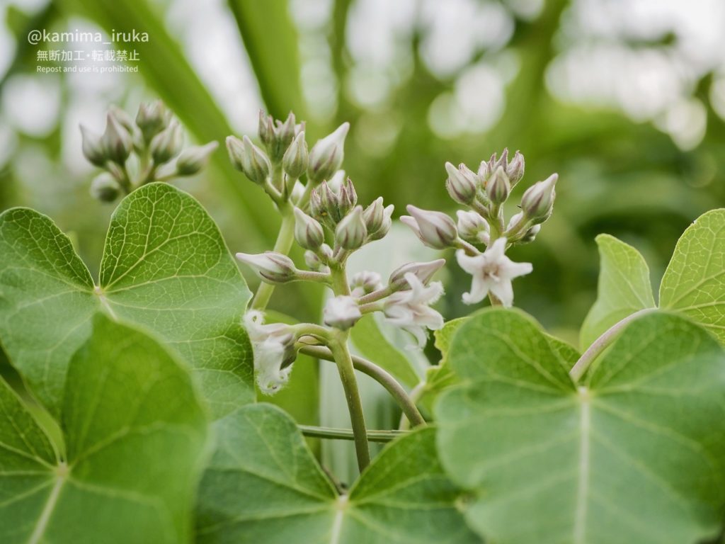 もっちりふわふわの花が終わると、10cmくらいの芋のような実がなり、その中から白い綿毛が飛散するとのこと。見るのが楽しみ…!