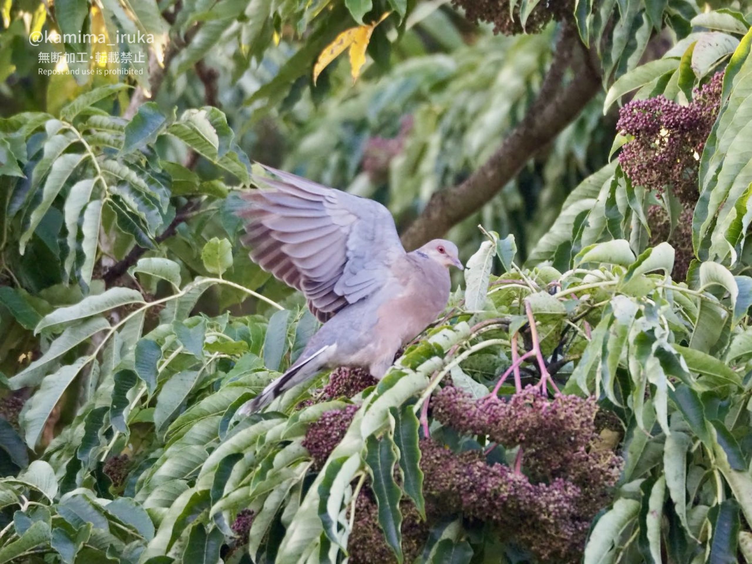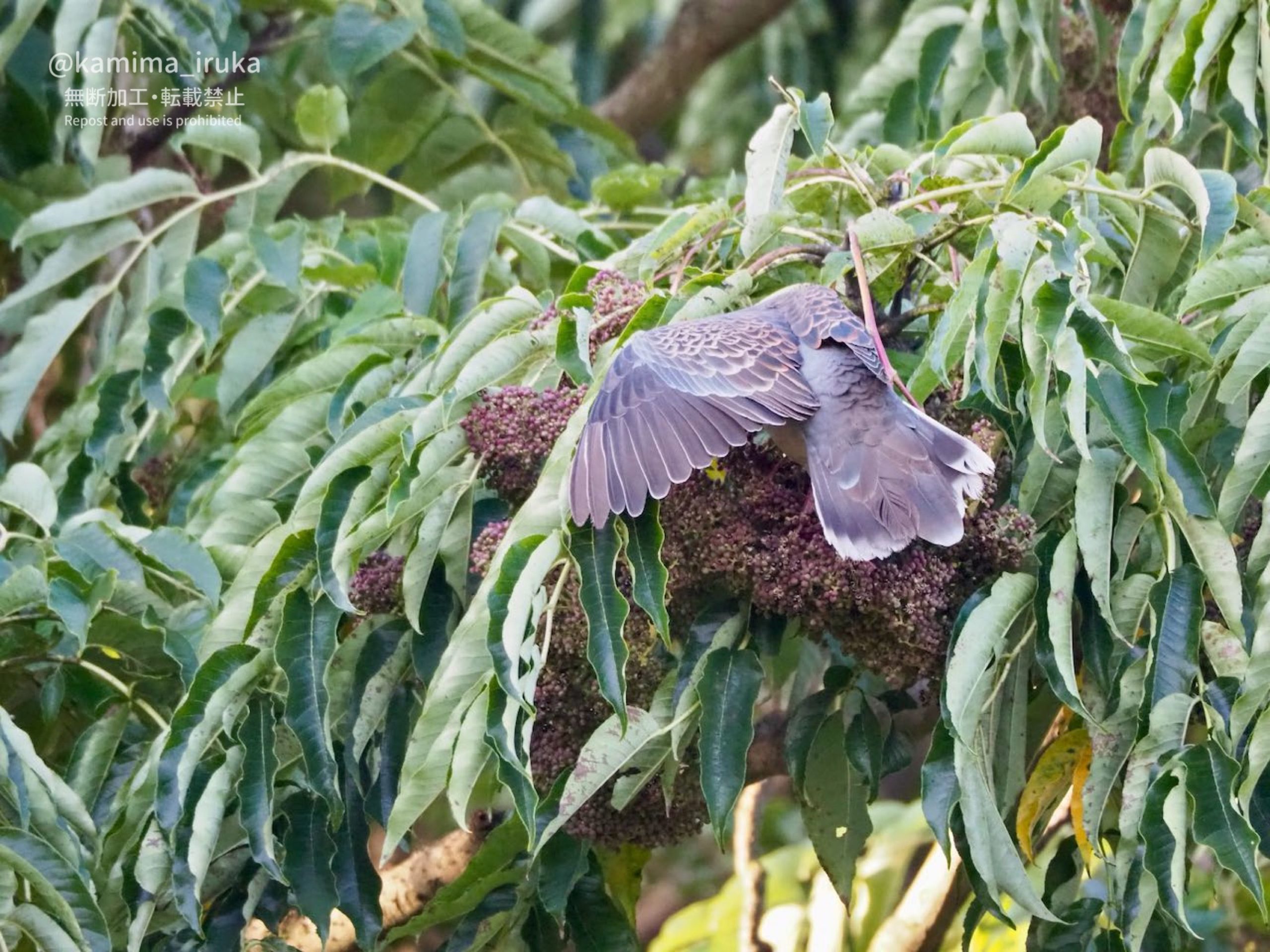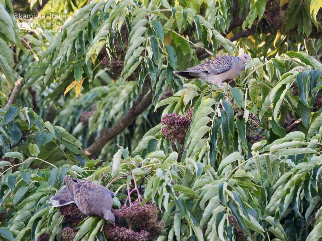 カラスザンショウの実を食べに来ていたキジバトたち。