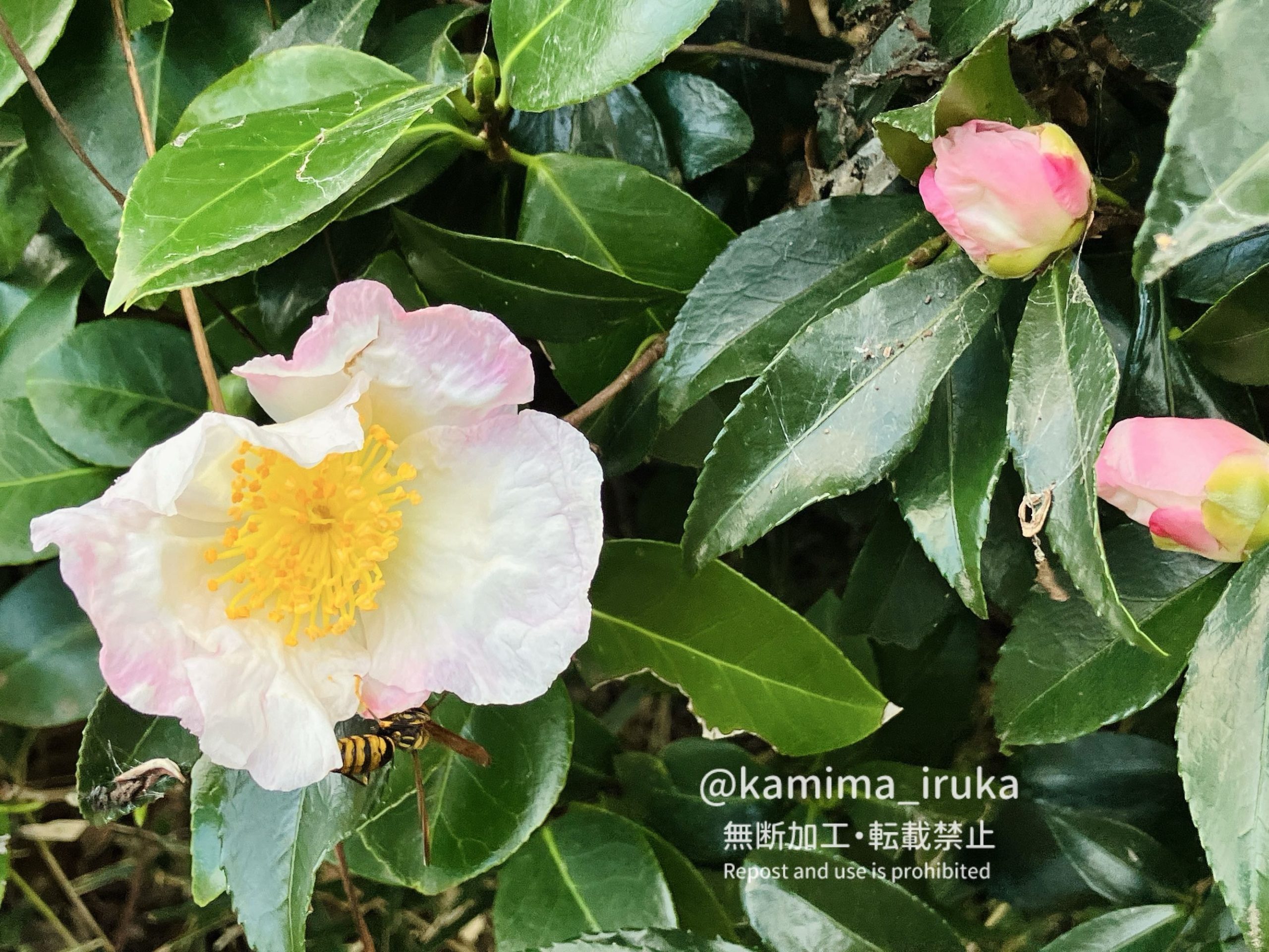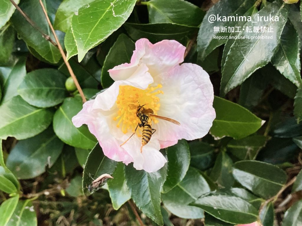kamima_iruka 2024-11-23 あささんぽ兼ウォーキング。サザンカの花にて、アシナガバチがしきりに蜜と花粉を集めておりました。 ← 2024/11/13 あささんぽ 2024/11/24 あささんぽ →