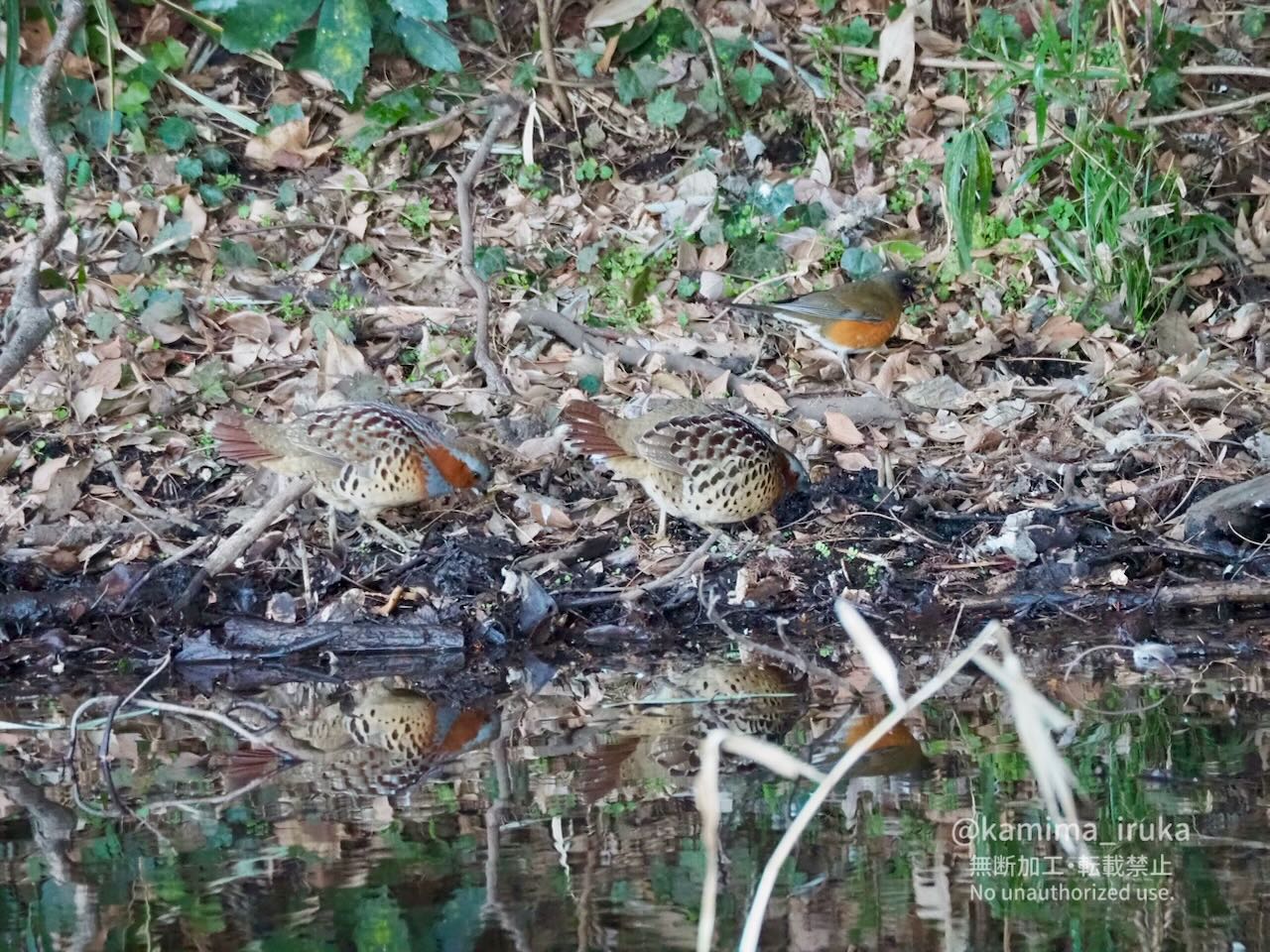 ♂くんもたいてい一緒にいるけれど、今日は藪の中でなかなか姿を捉えられず…。