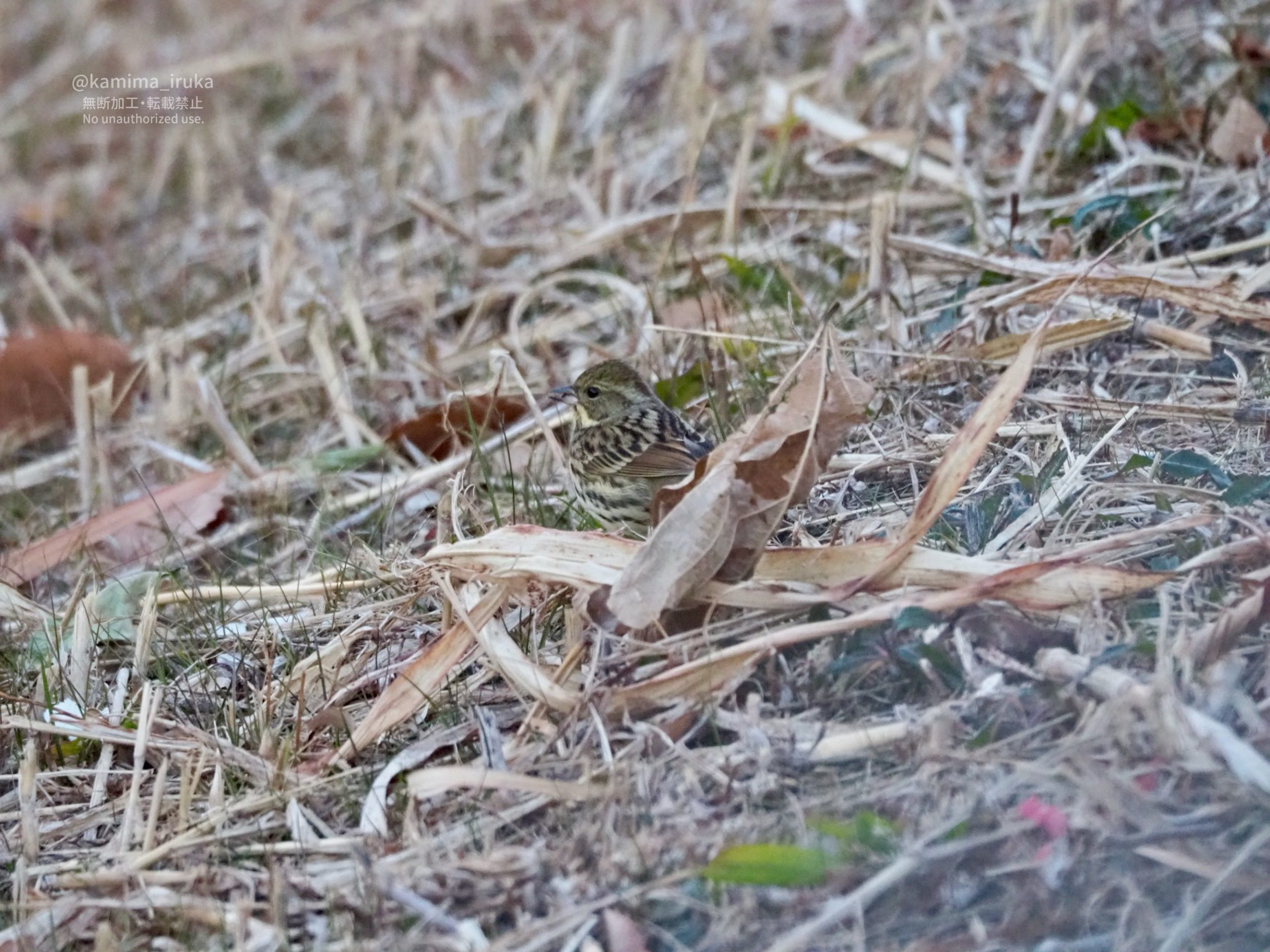 アオジ、人が近くにいてもあんまり気にしないときもあり、何がどう違うのかよくわからない。