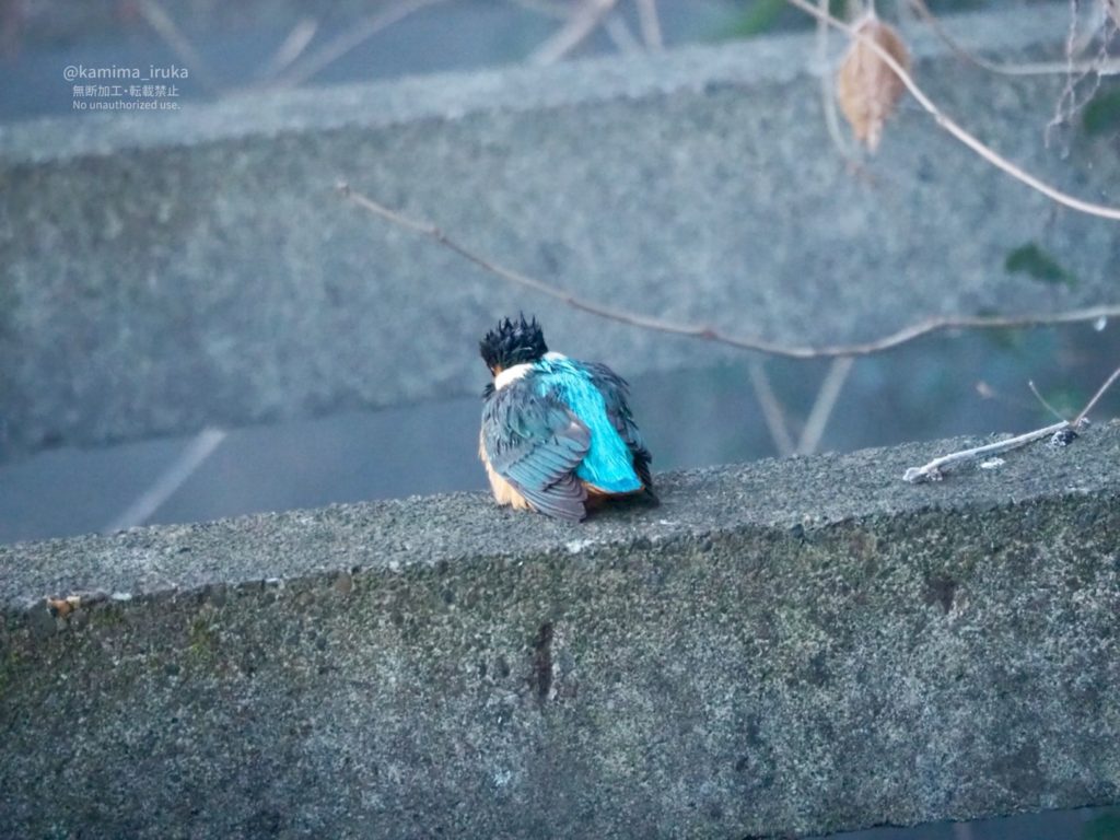 ダイビング直後だったのか、べしょべしょになっていたカワセミちゃんと