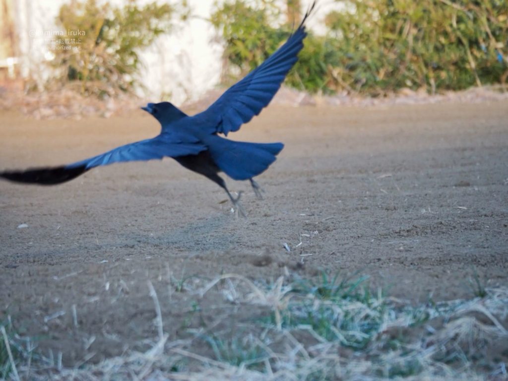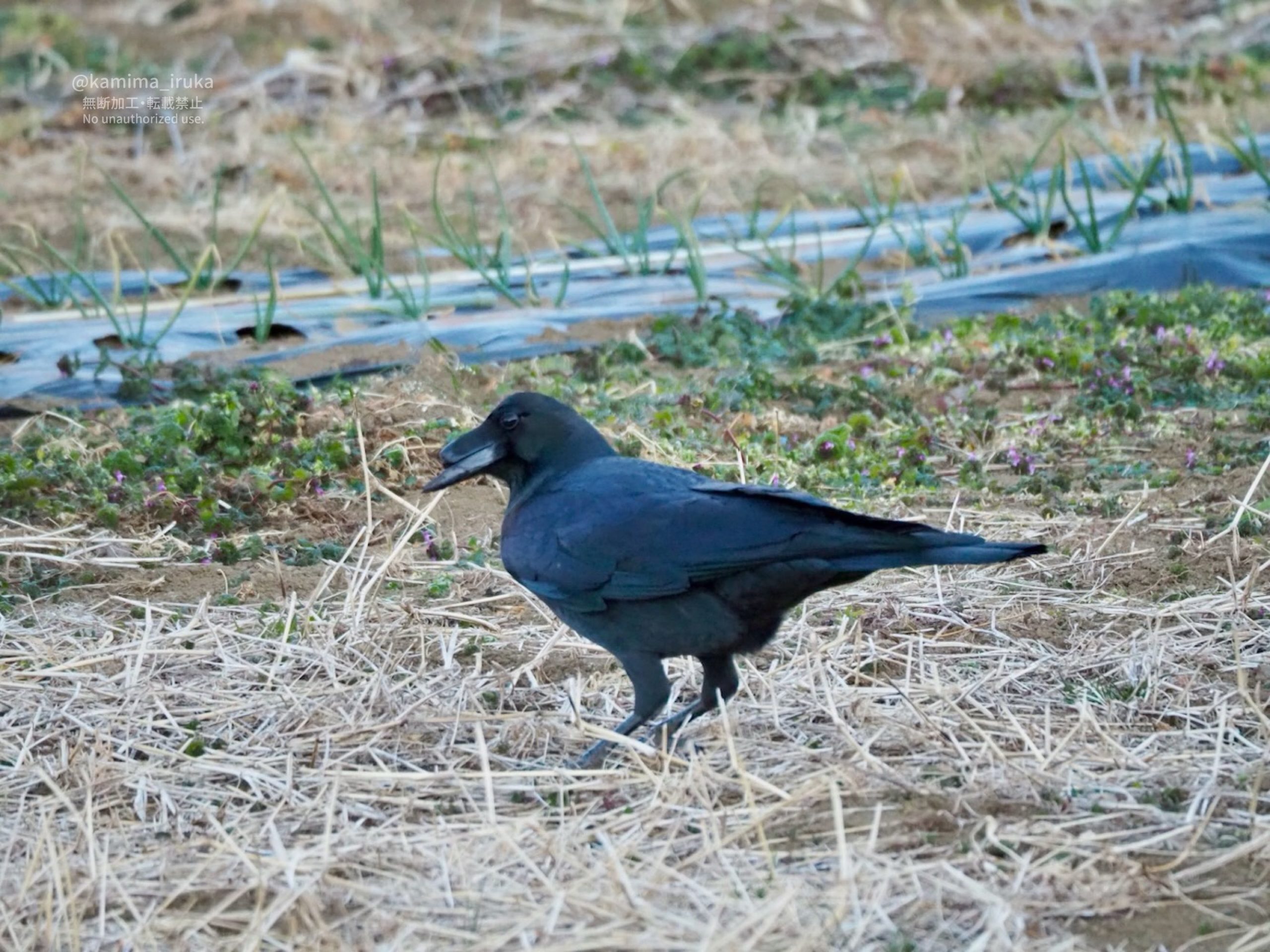私に見られていることに気付きつつもしばらく畑を闊歩したあとは、元気に飛び去っていきました。
