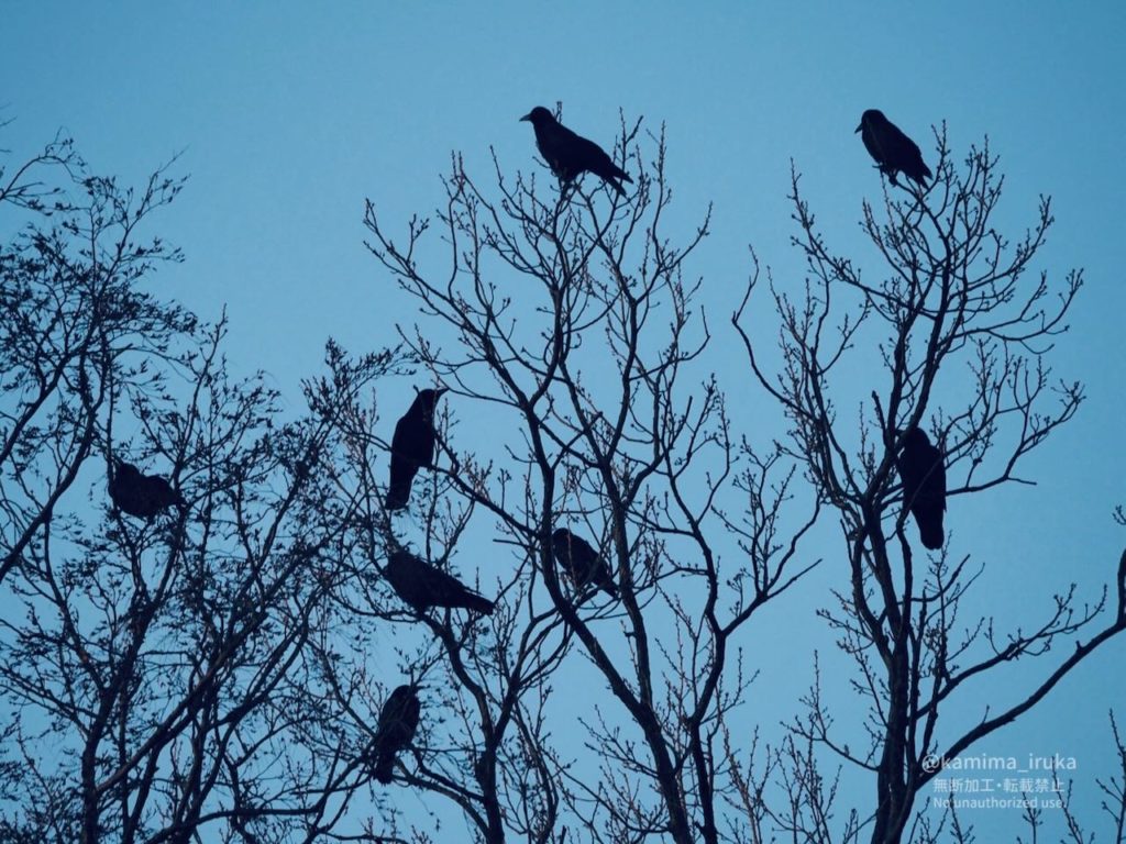 頭上でカラスが何やら騒いでおり、どうやら別の鳥ともめている様子。
