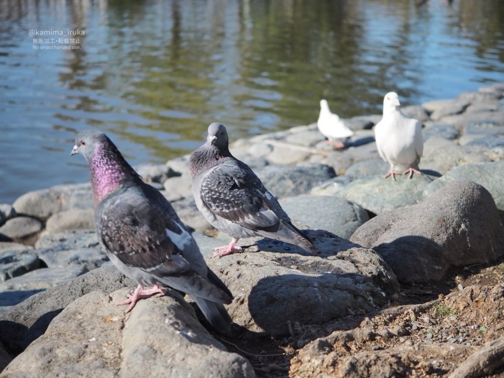 池にはカモやカモメやオオバンなど、水鳥のみんな達が集い、しきりにニンゲンに餌をねだっておりました。