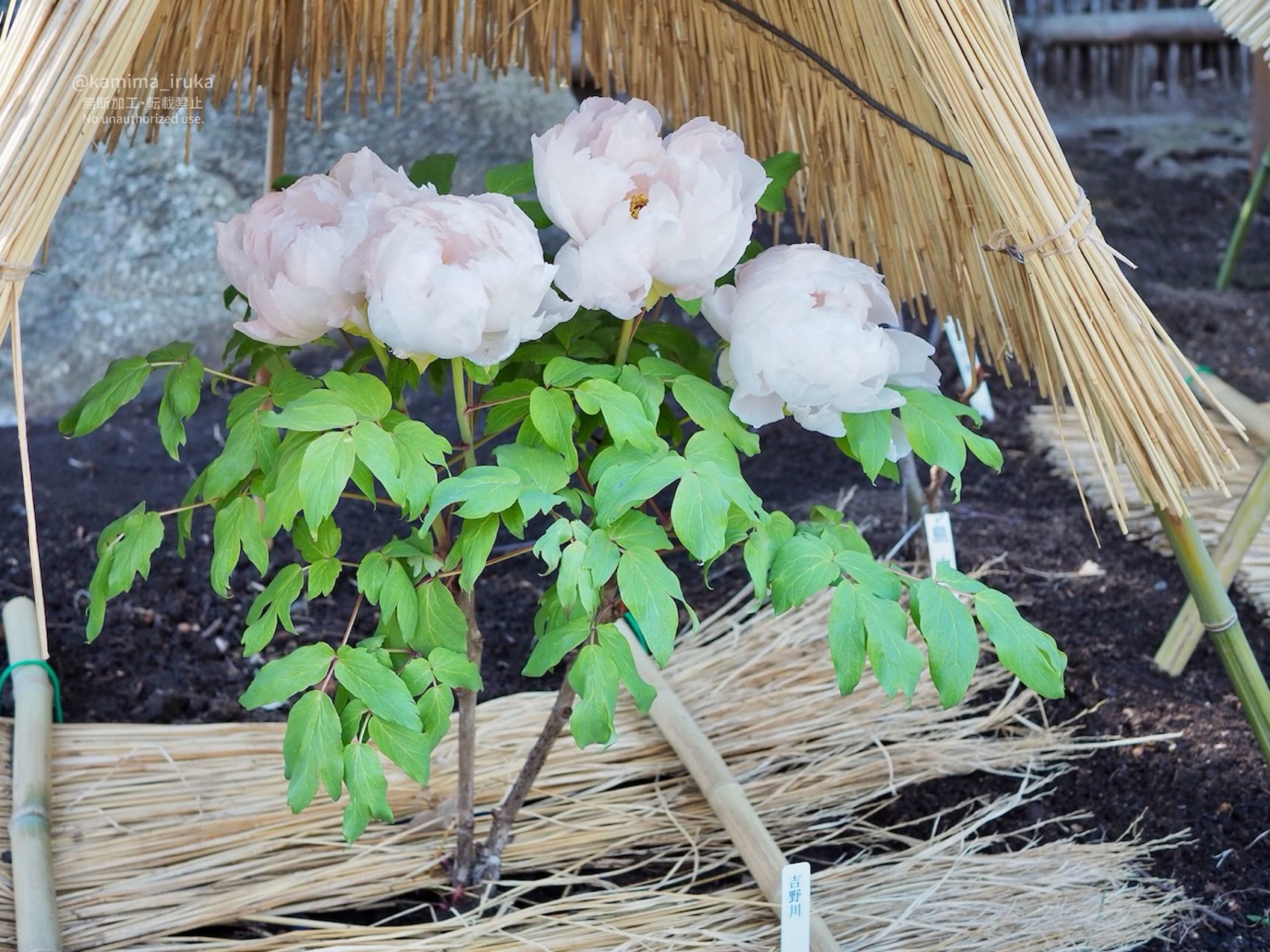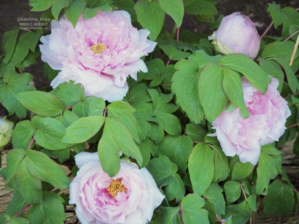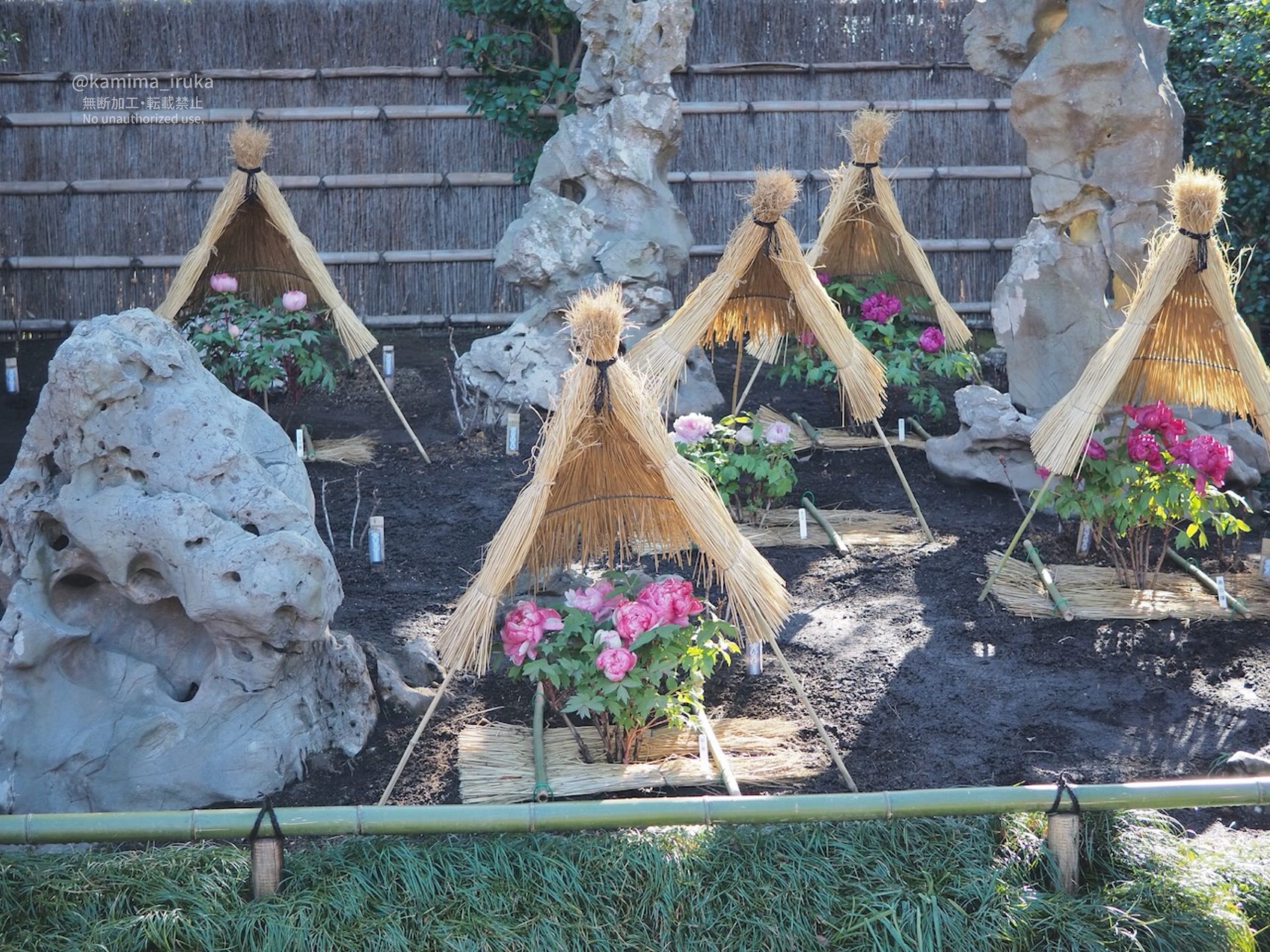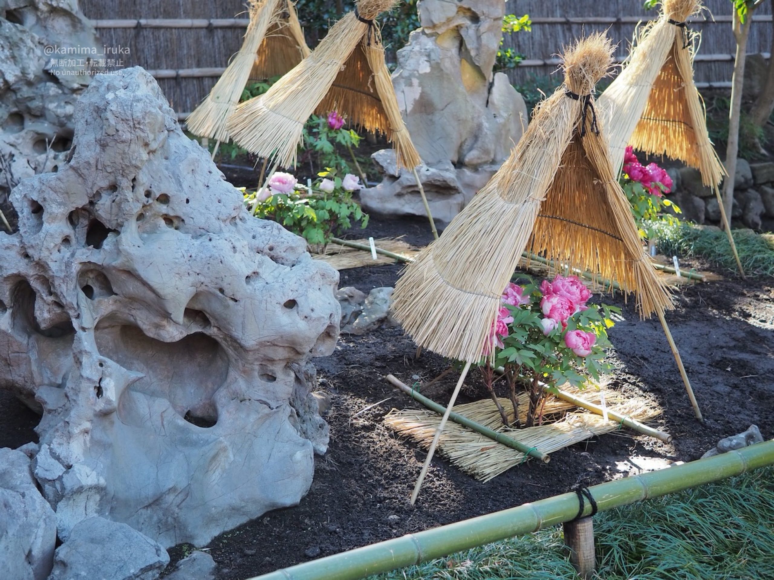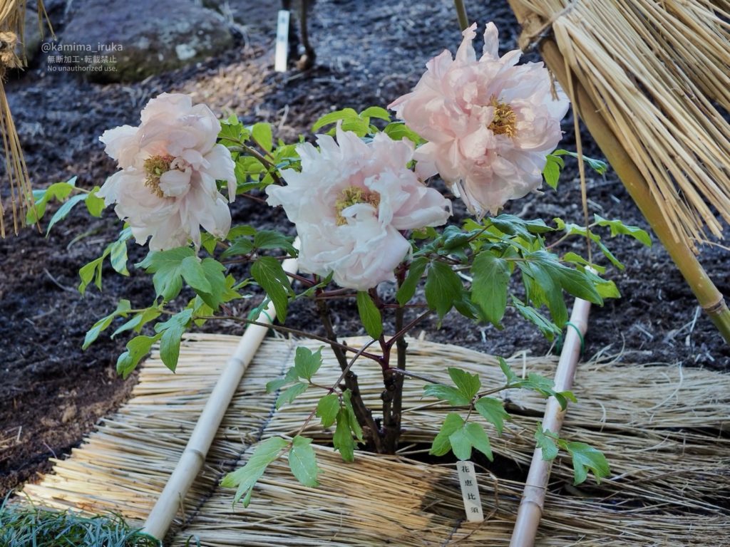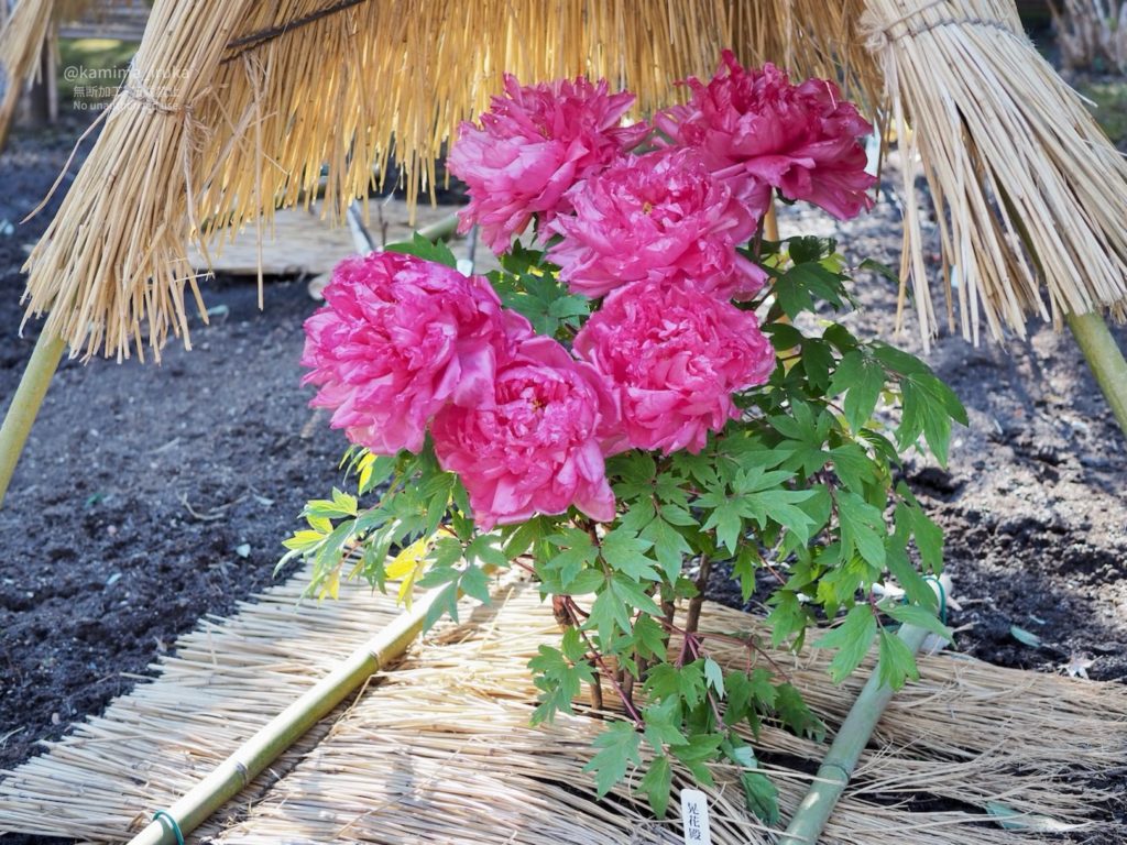 一株ずつ大事に大事に、わらぼっち(藁囲い)に包まれた牡丹の皆様は、まるで何処かのお姫様のよう。