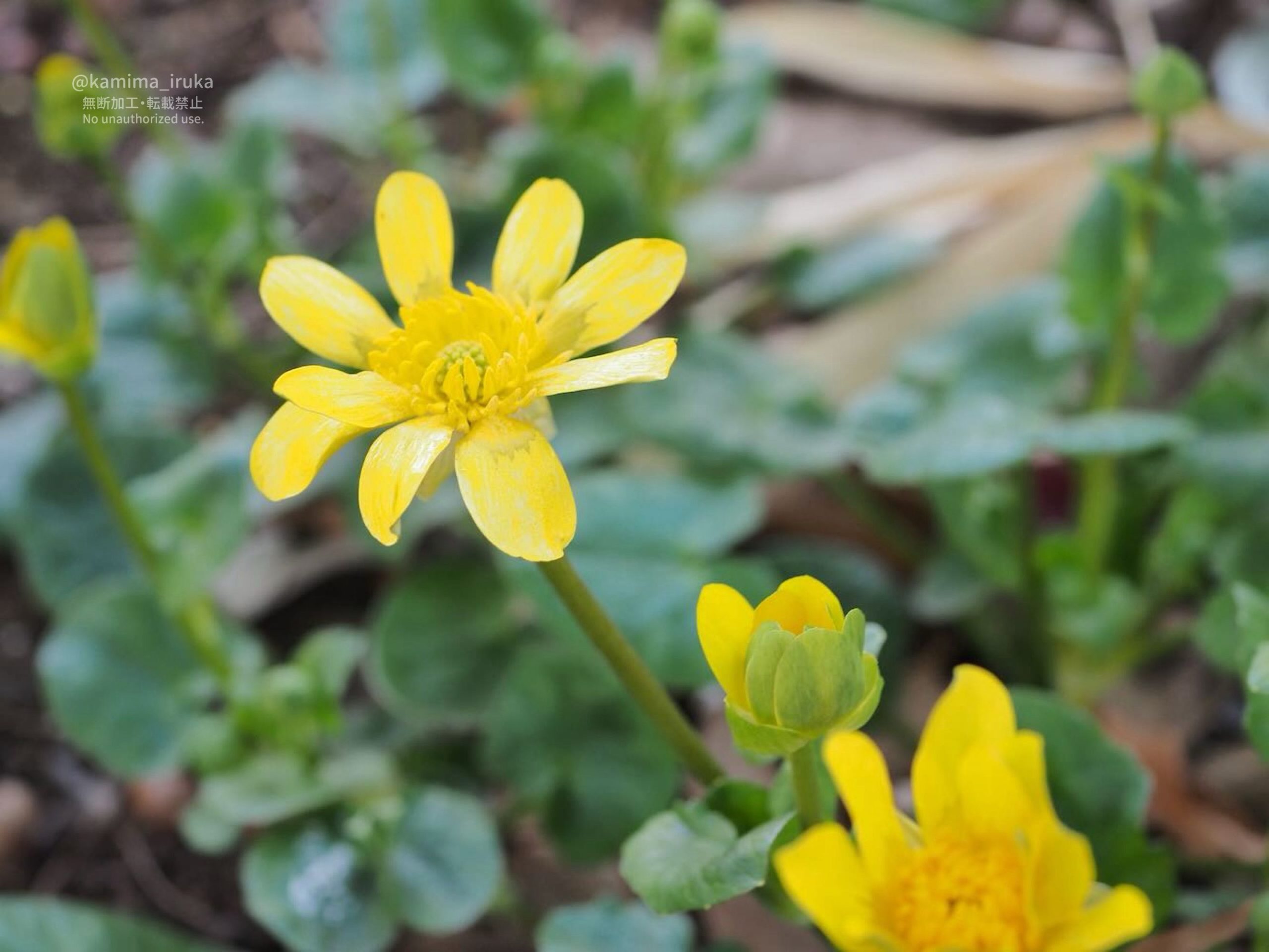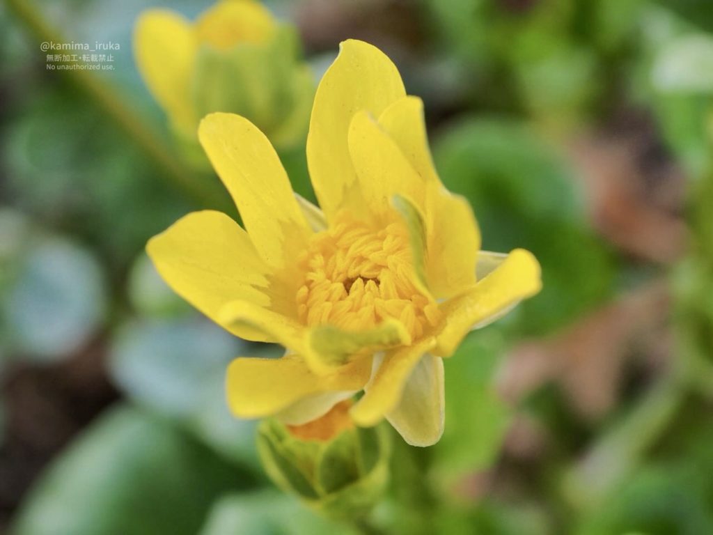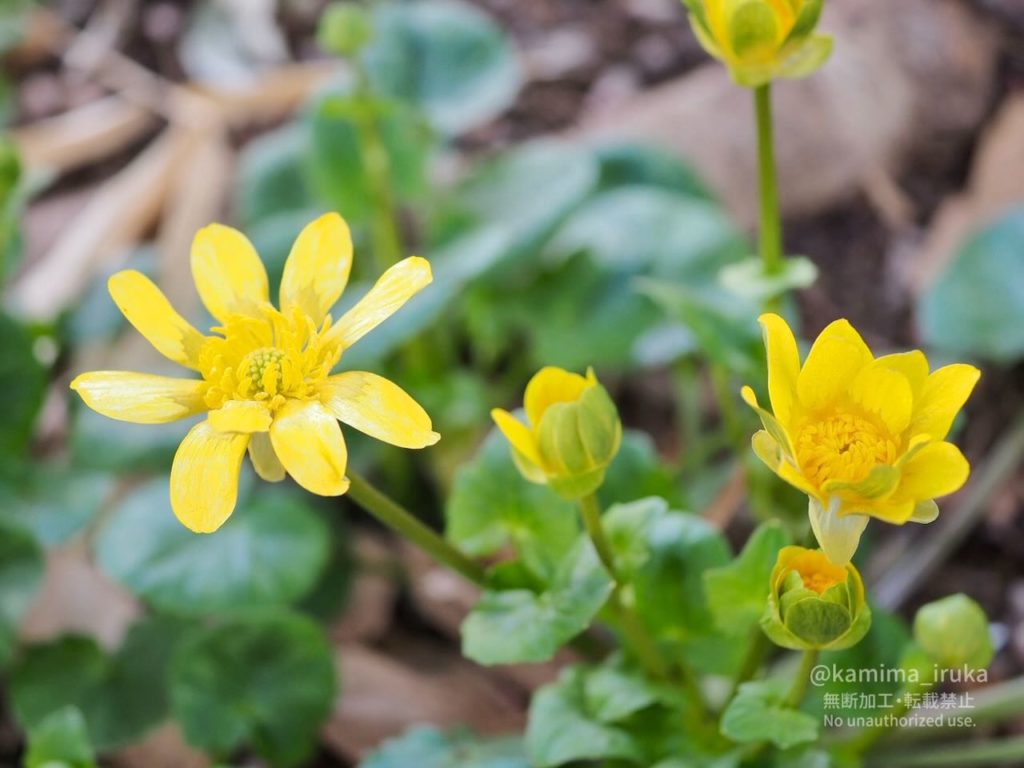 公園の片隅で見つけた、キクザキリュウキンカ(別名:ヒメリュウキンカ)かな?