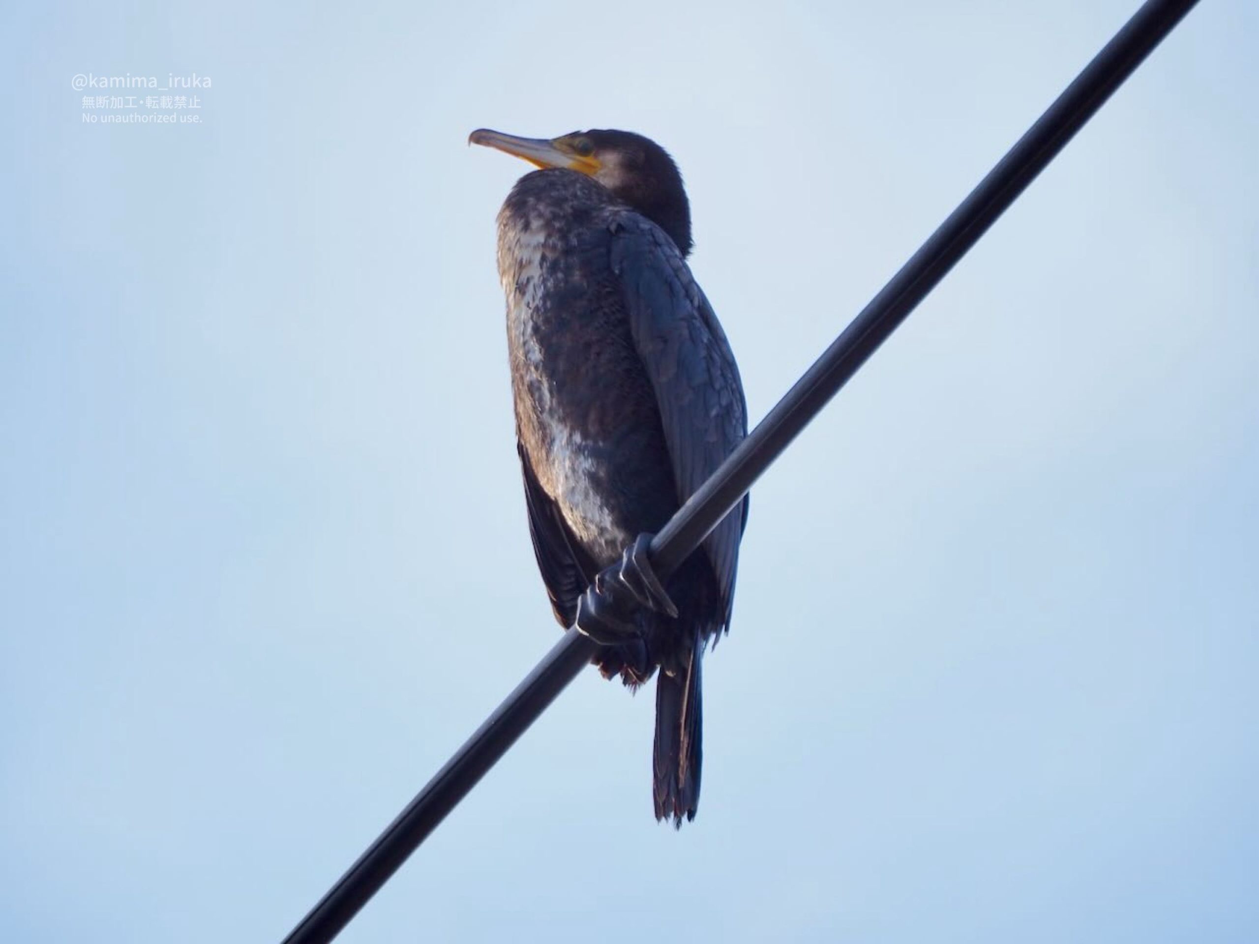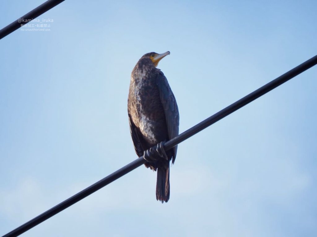 電線に黒い鳥が…明らかにカラスよりデカいし、シルエットが違うな?