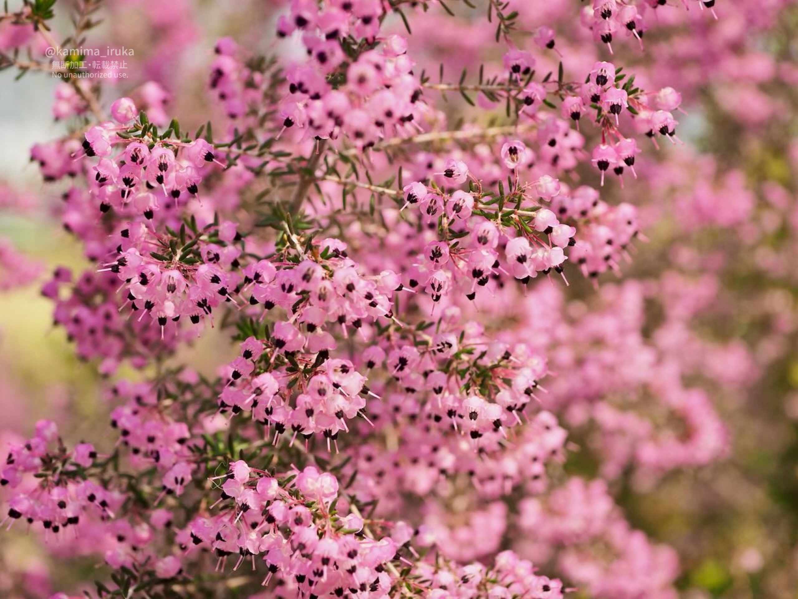 遠目に見ると愛らしく、近づいてみるとちょっと強めの印象で、私には「ジャノメエリカ」という呼び名のほうがしっくりきます。