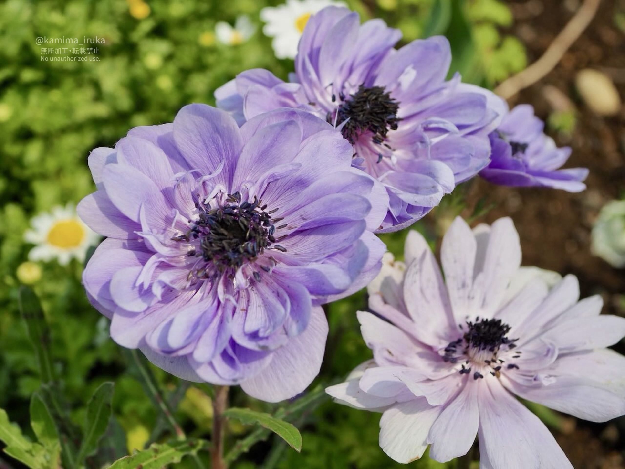 斑の入り方が好きなパンダネモフィラと、アザミさんカラー(?)のアネモネ!