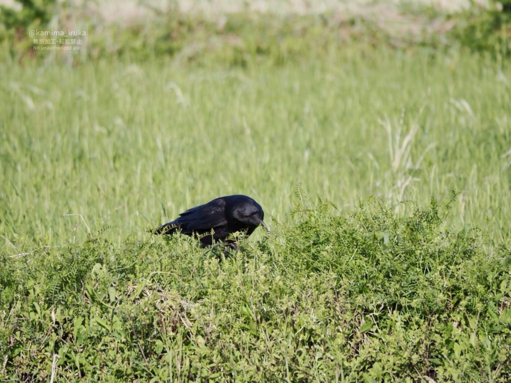 と思ったら、このカラスが徒歩でかなり近づいてきていて(2mくらい)