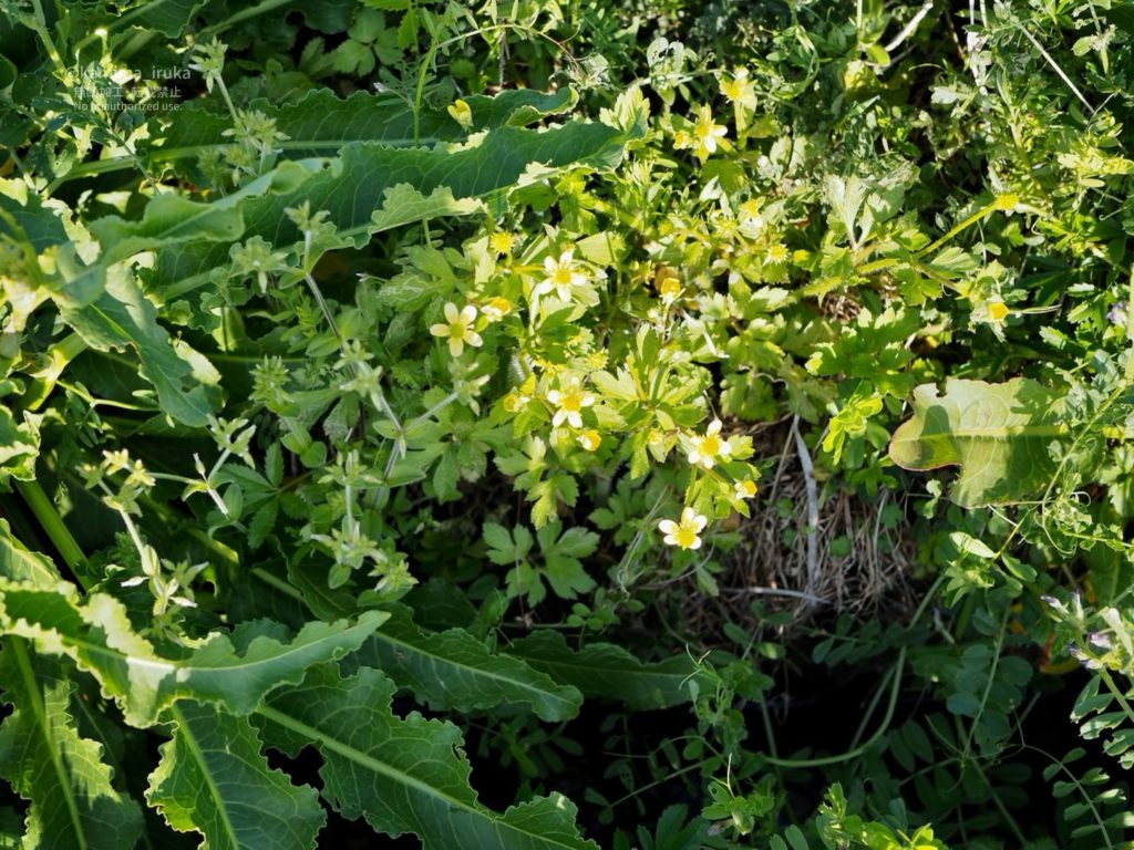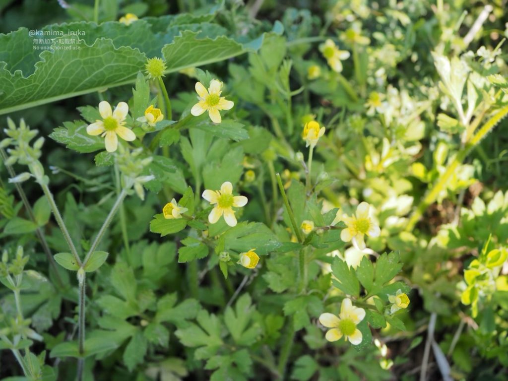 田んぼの畦道には、かわいらしい黄色いお花が、控えめにぽちぽちと…ケキツネノボタンかな?