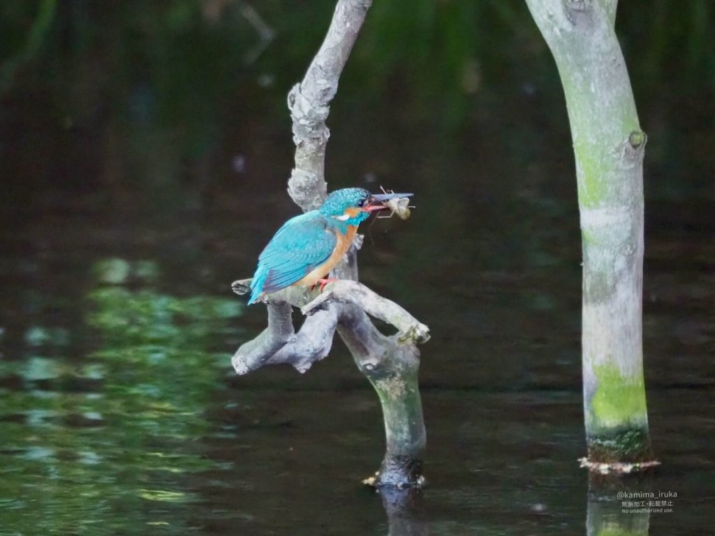 今朝のカワセミくん。今日は♂くんにのみ会えました。