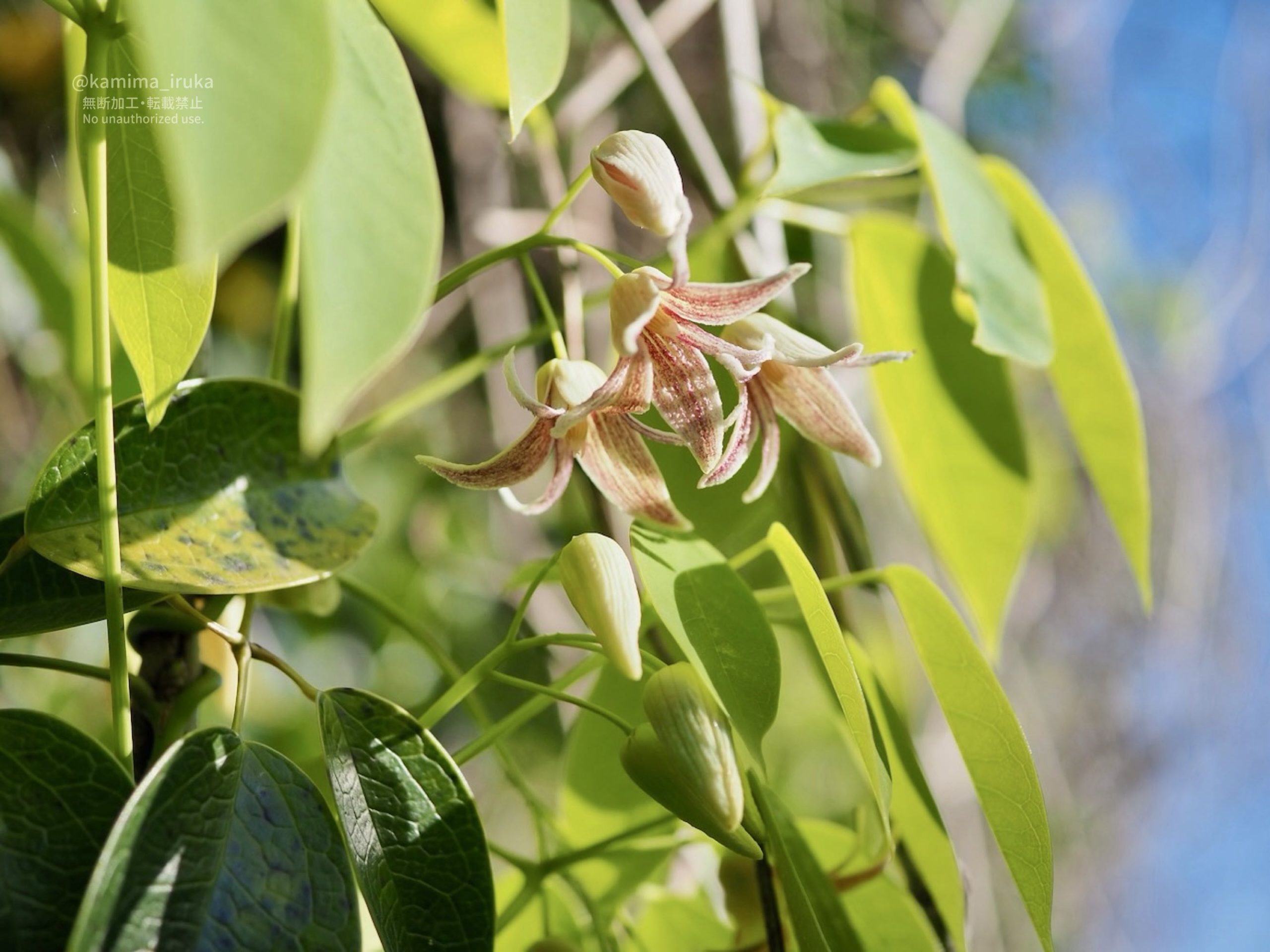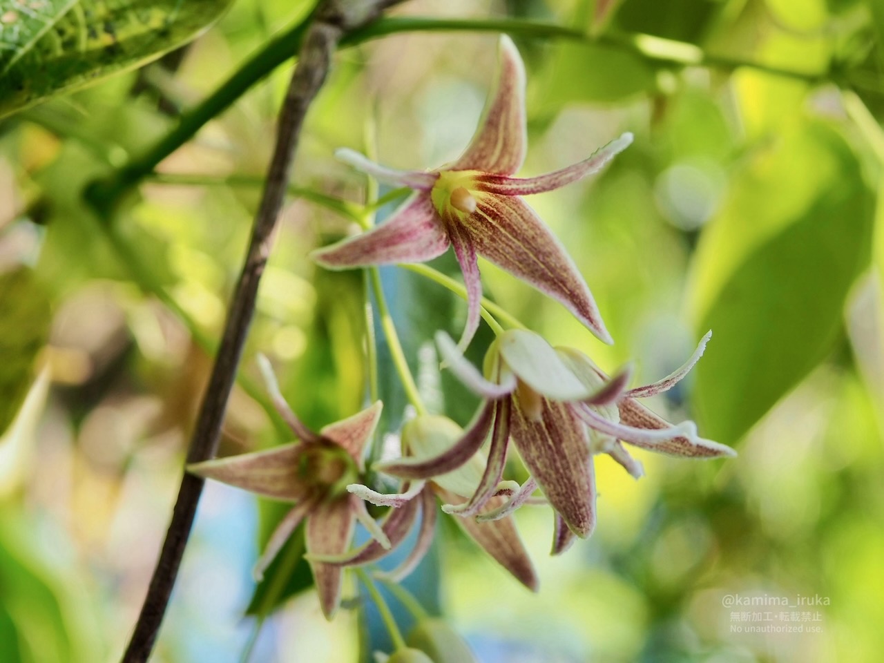 ムベと書いたけど、アケビの花かも知れません(よく似てるらしく、パッと見わからなかった…)