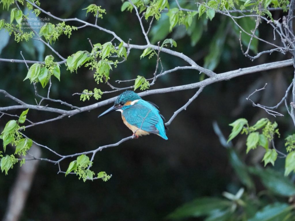 いつもの池で獲物を探しているのか、それとも♀ちゃんを待っているのか…カワセミ♂くん