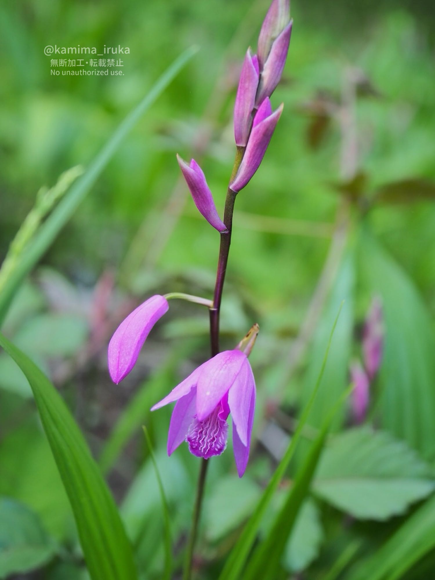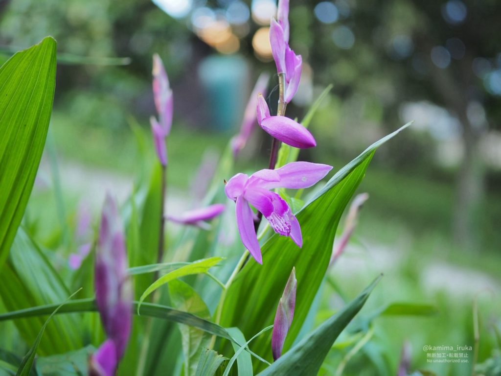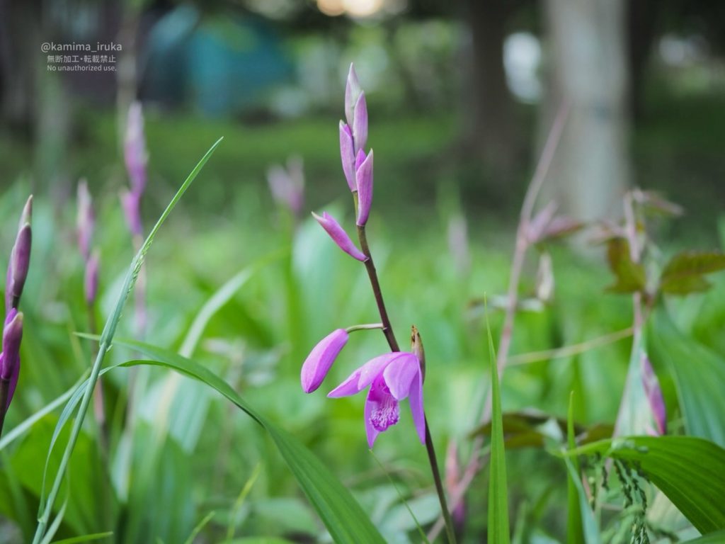 シランの優雅な花が咲き始めていたり、朝露を纏うタケノコを見つけたりしました。