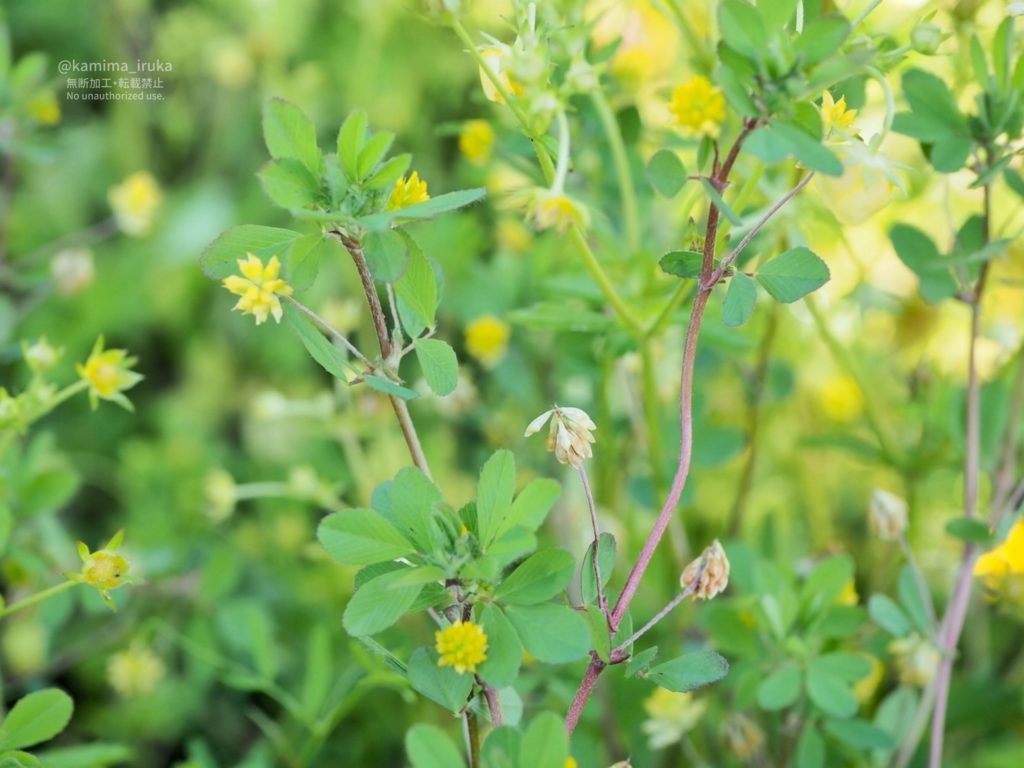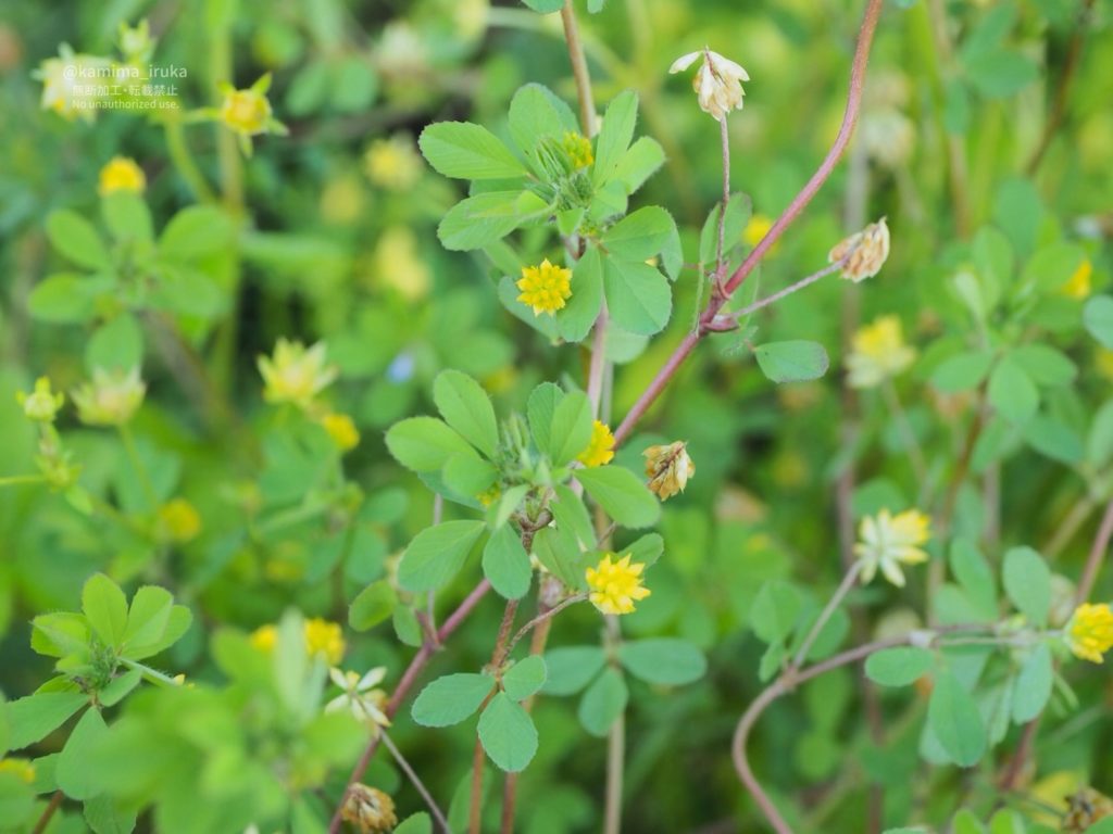 名前の由来は、お馴染みのシロツメクサ・アカツメクサと比べて全体的にちっちゃいので「米粒」とか