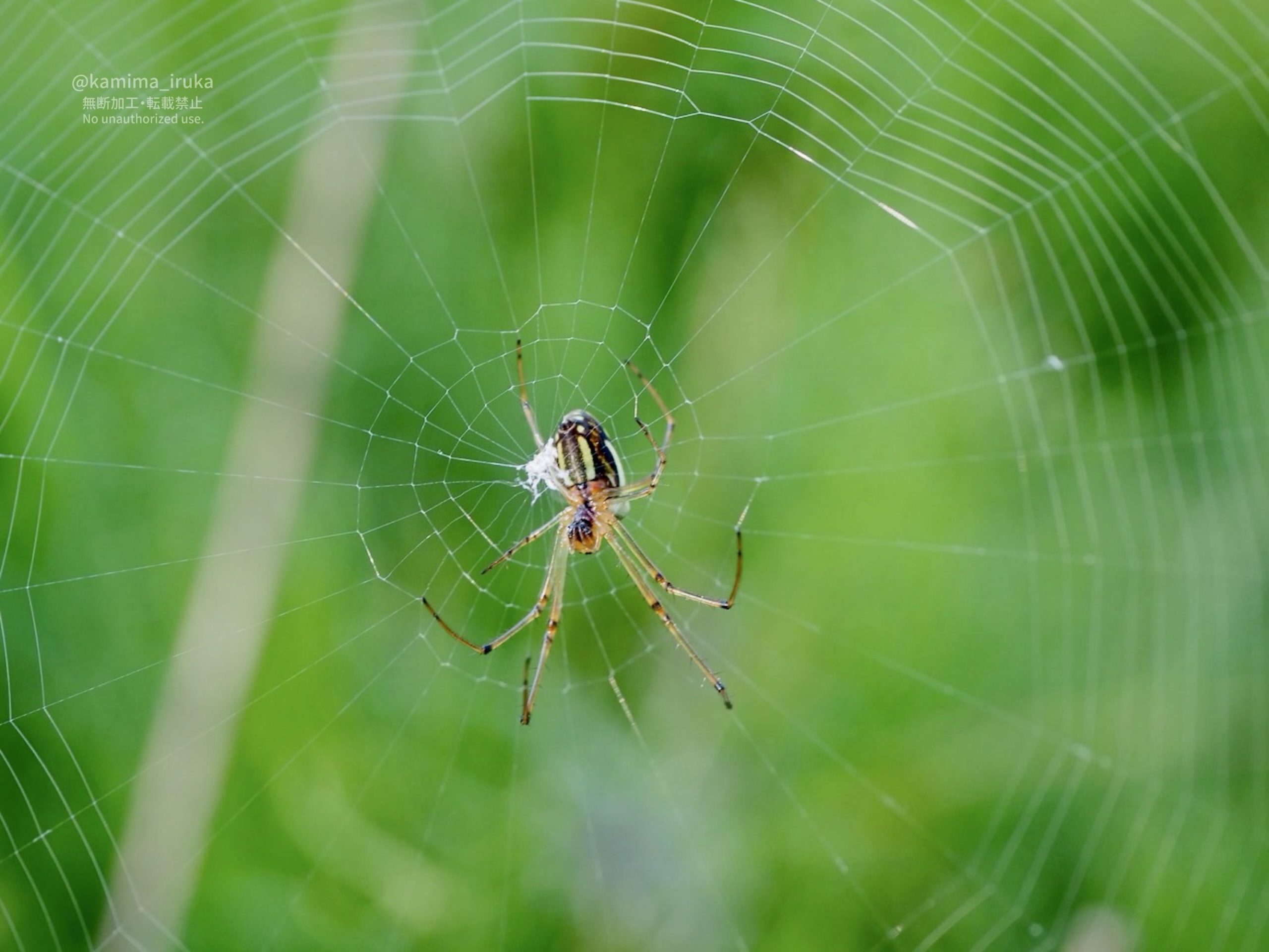 横糸を張り終わって、これからこしきを開くであろうチュウガタシロカネグモちゃん