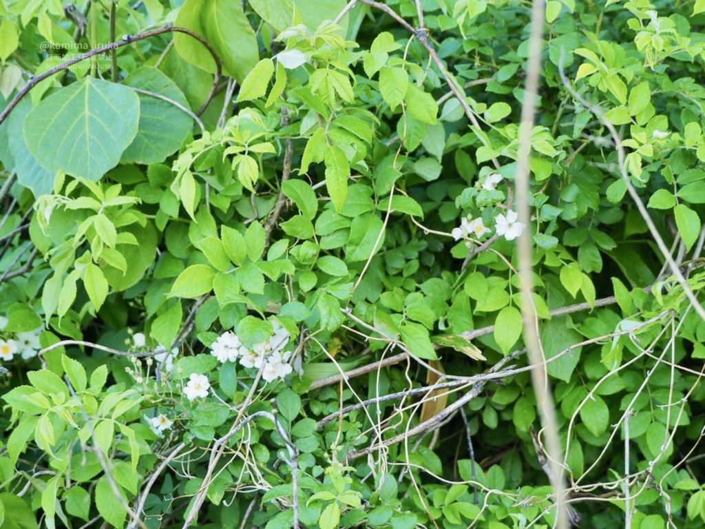 蔓っぽいしバラ科っぽいし、少し前まで咲いていたクサイチゴにも似ているけど、花弁の形が違いますな〜?