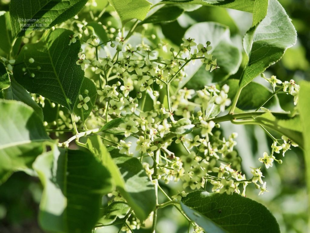 若葉の間に花が咲いて爽やかさが増したマユミ