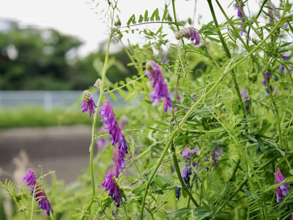 生垣のシャリンバイに真っ白な花がたくさん咲いていたり、河川敷のナヨクサフジがまだまだ元気だったりしました。