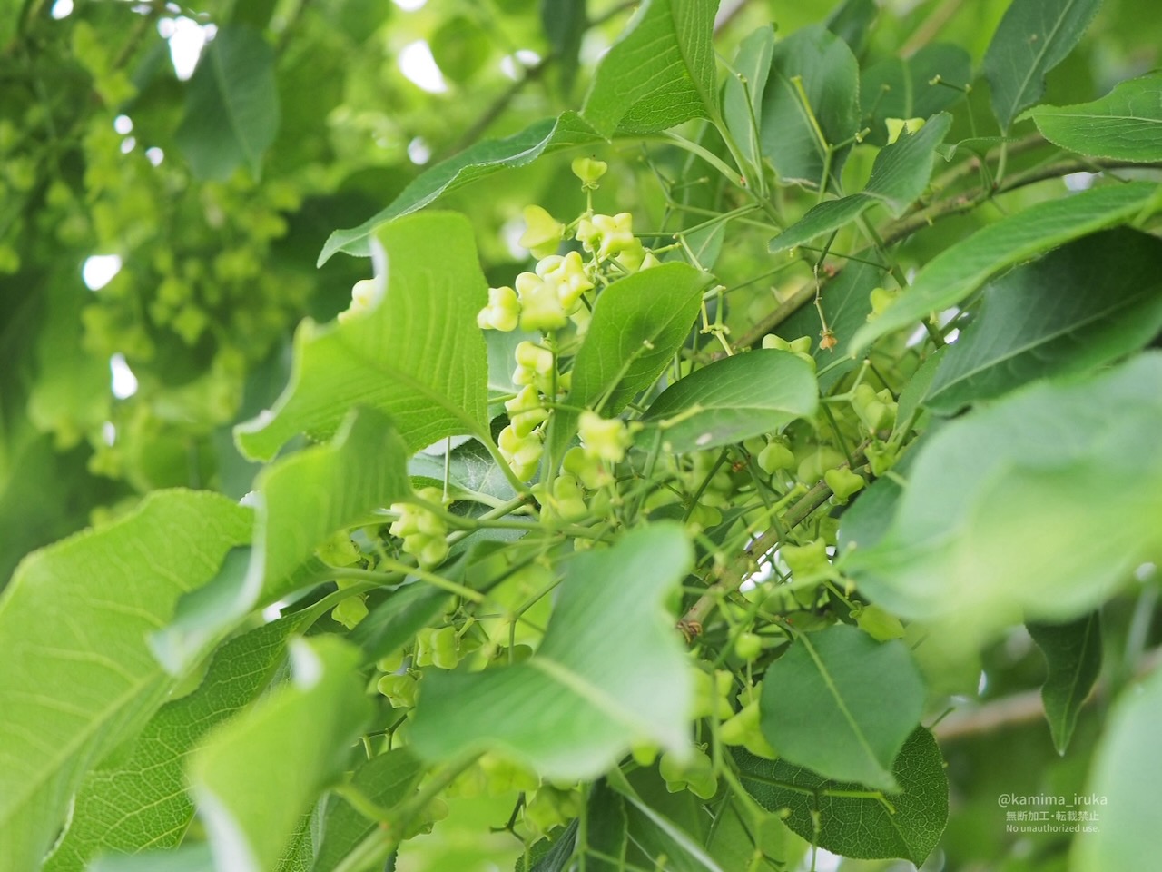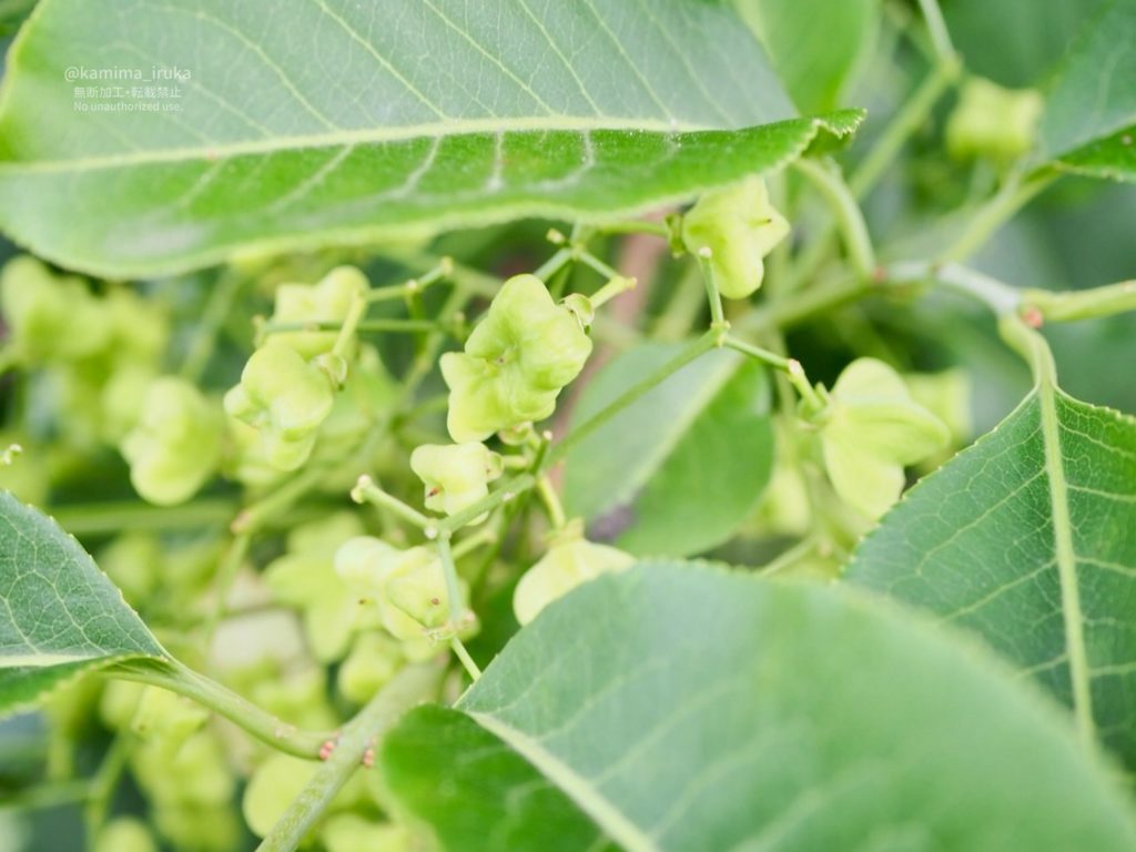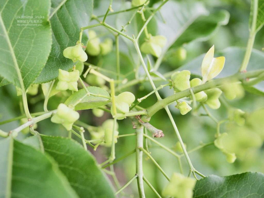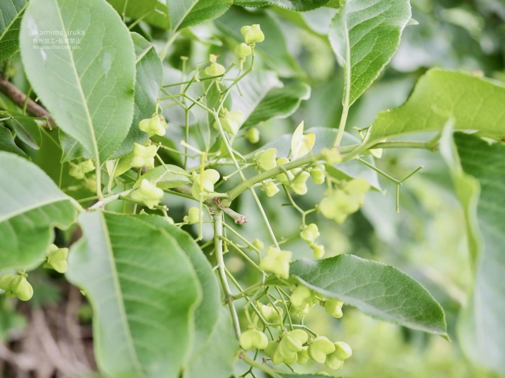 マユミの花が終わったあとに、プクッとふくらんだ菱形のかわいい実がたくさんついておりました。