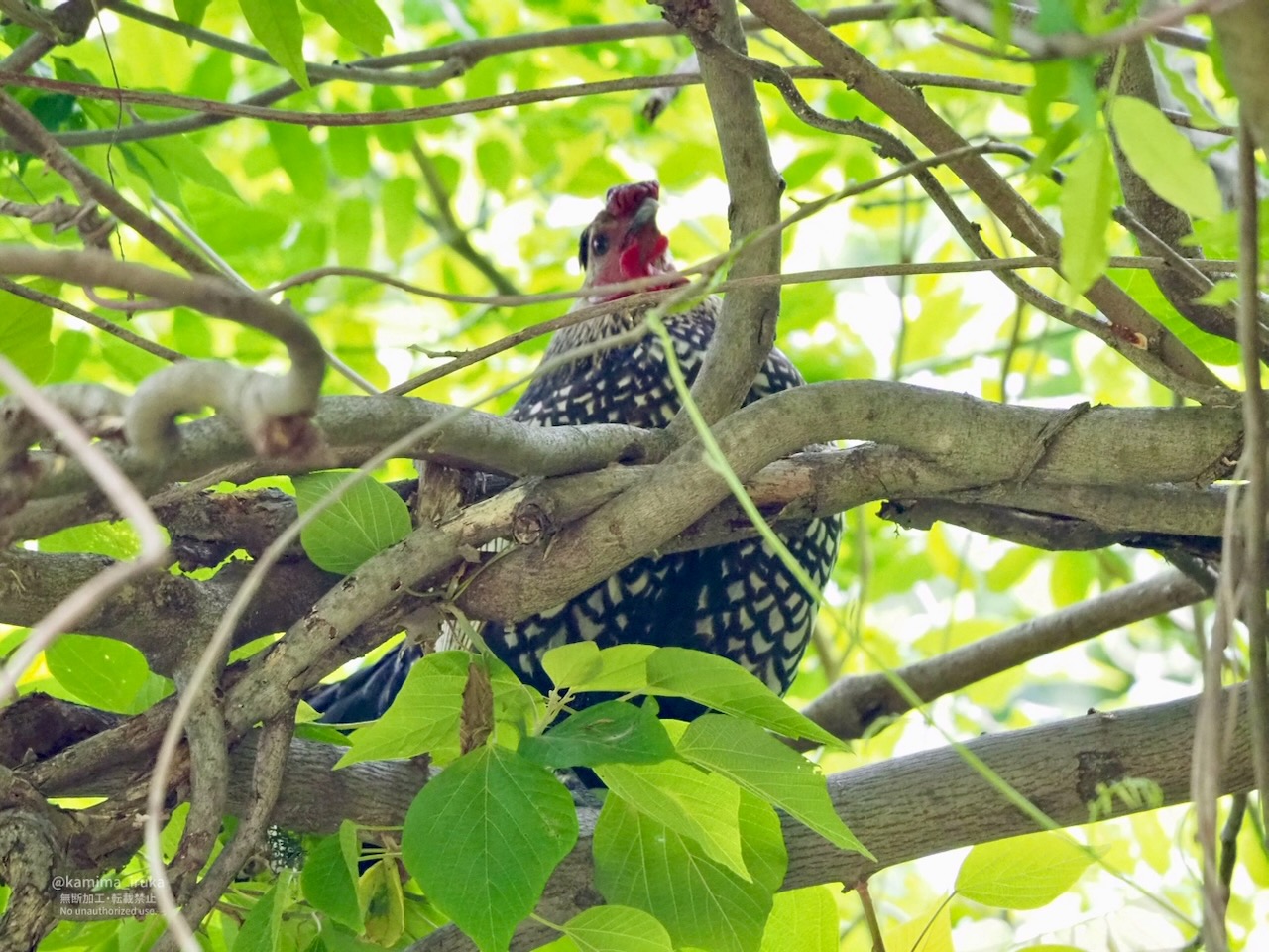 コケさん、ニワトリなのに樹上にいがち。