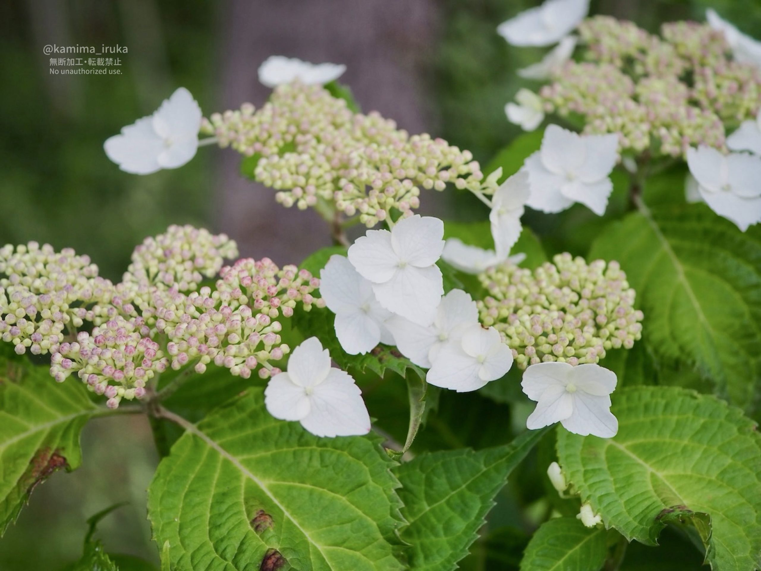 雑木林のまわりでは、ヤマアジサイの花が次々に開花しておりました。