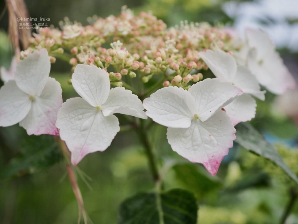 白をベースにほんのり色づくタイプのアジサイっていいですよね…。