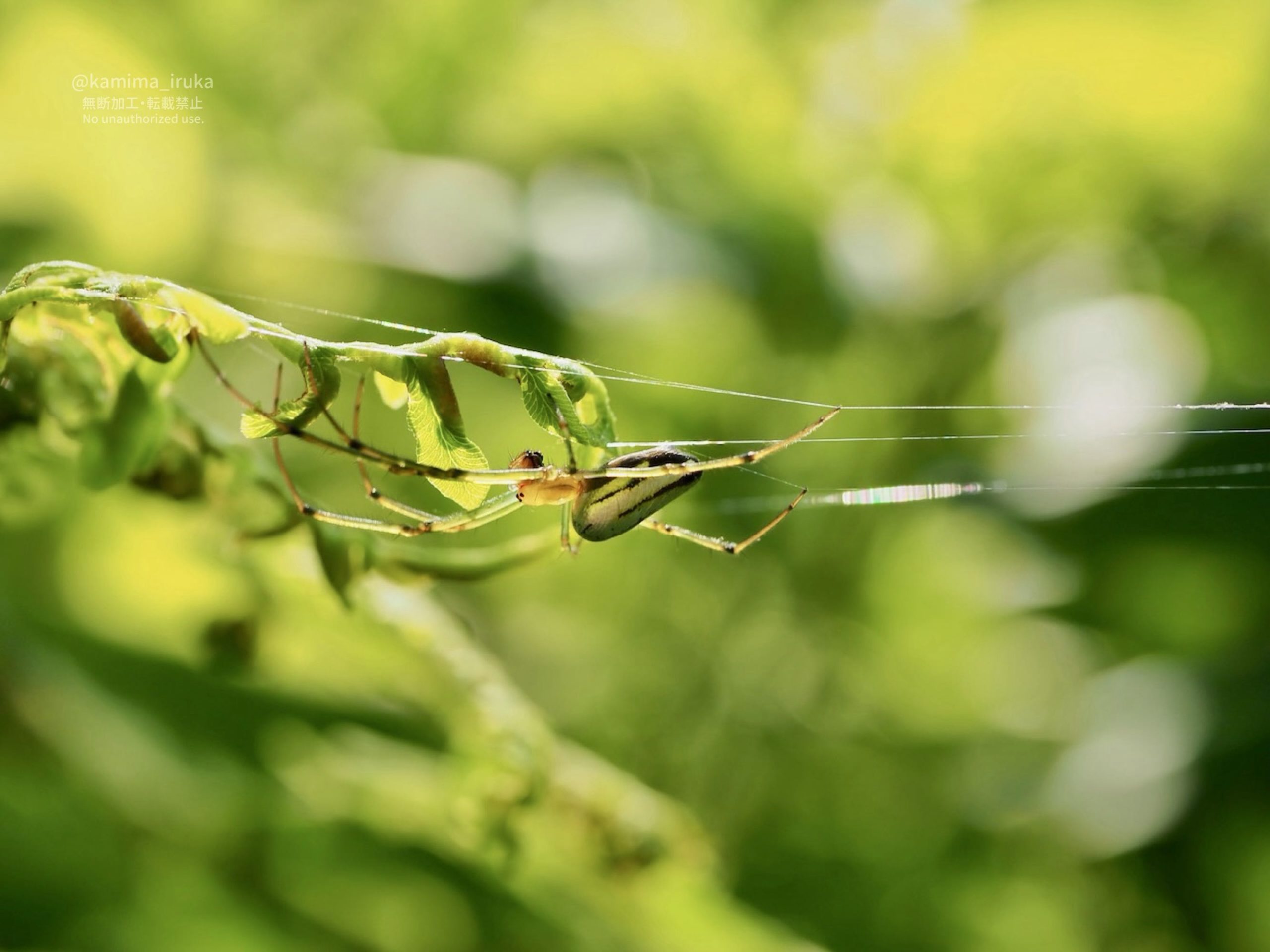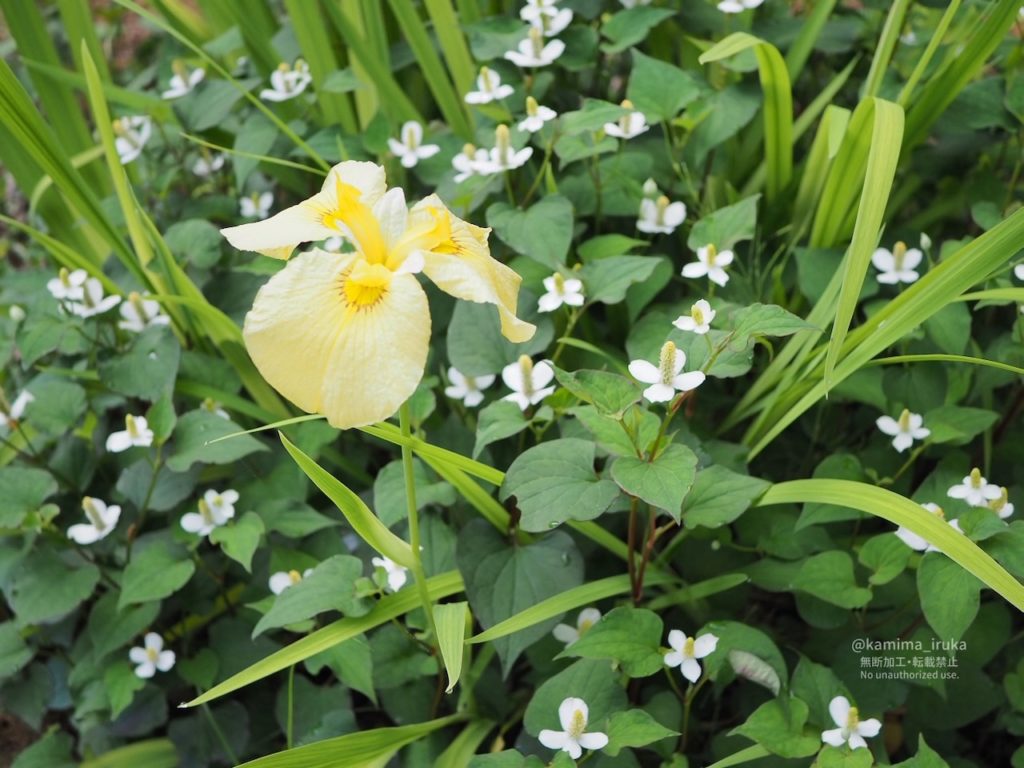 木の実や蜘蛛をたくさん見つけたり、黄色い花菖蒲が咲いてる場所を見つけたりしました。