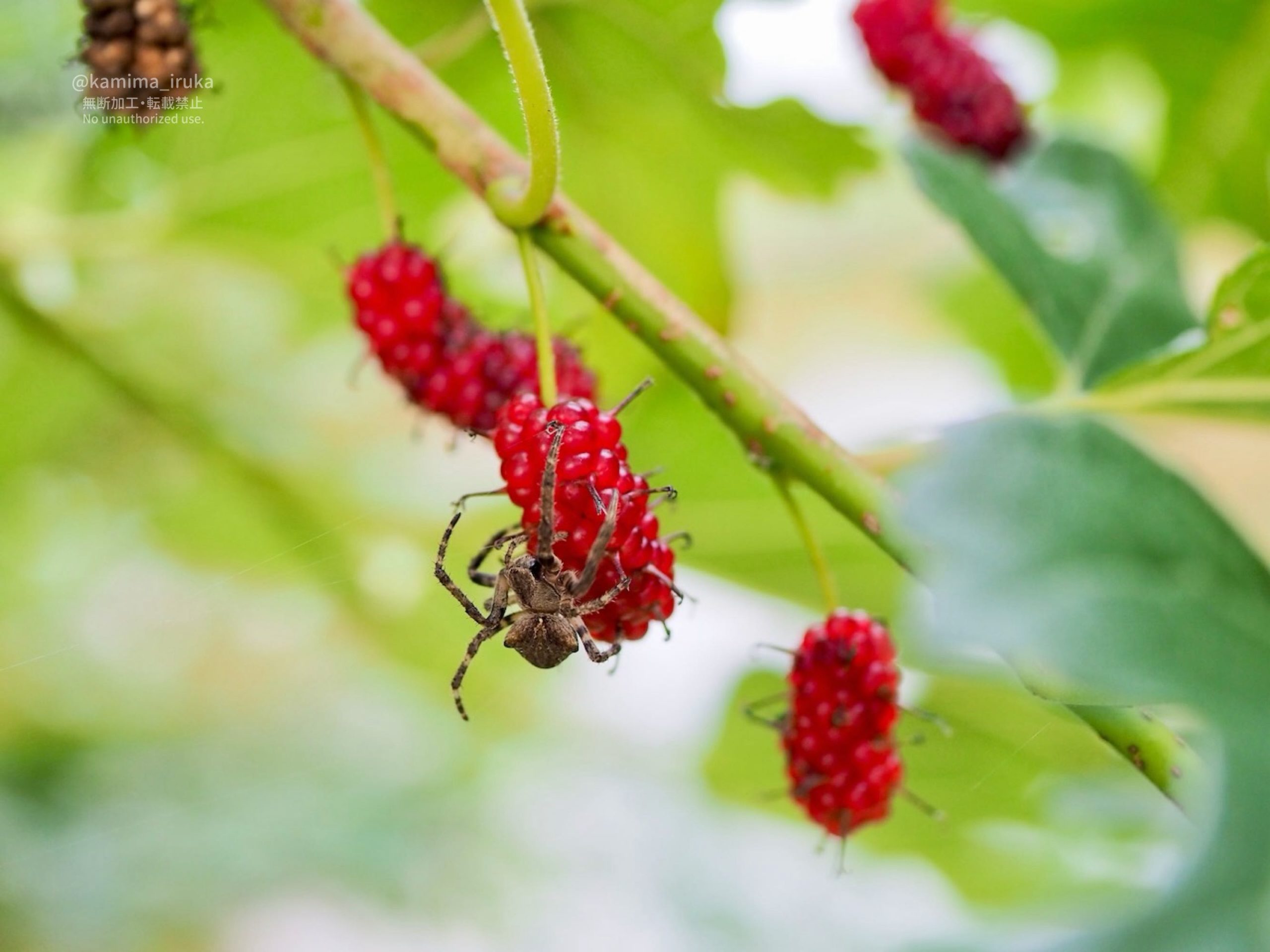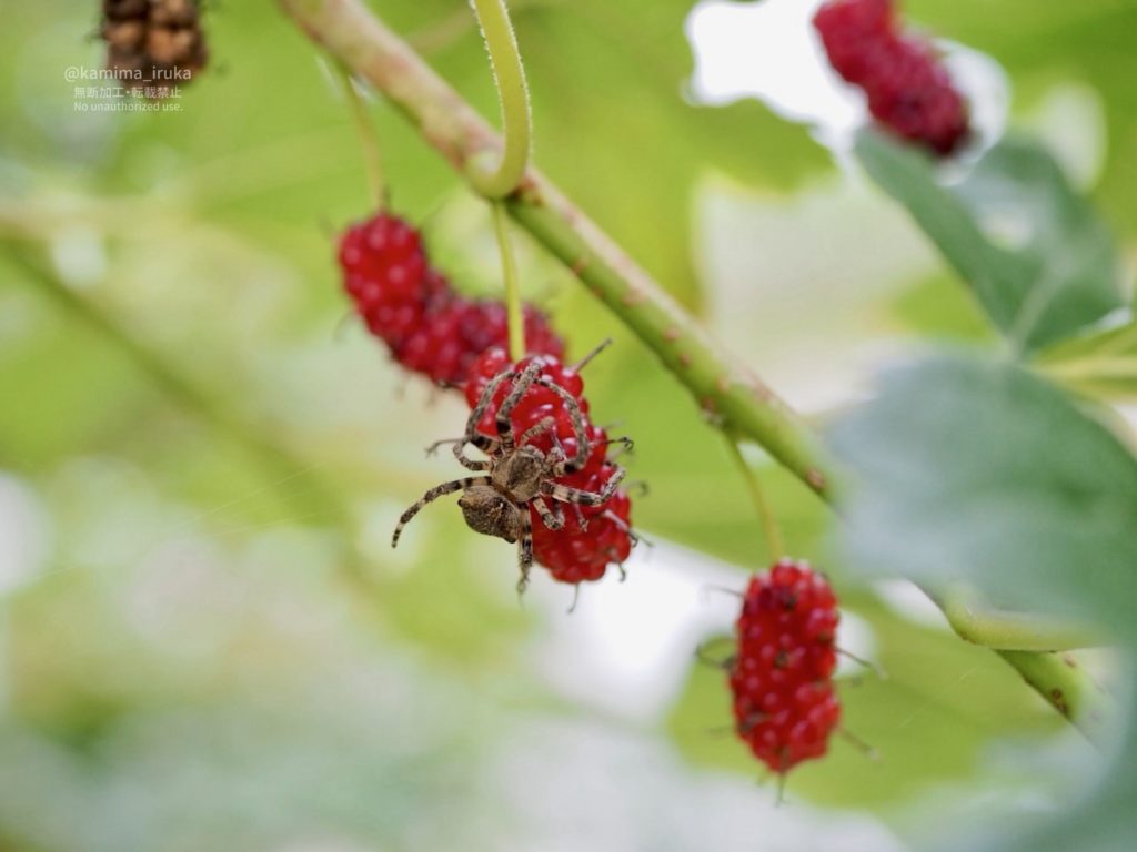 マルベリーの実によじのぼってたカニグモ科っぽい子