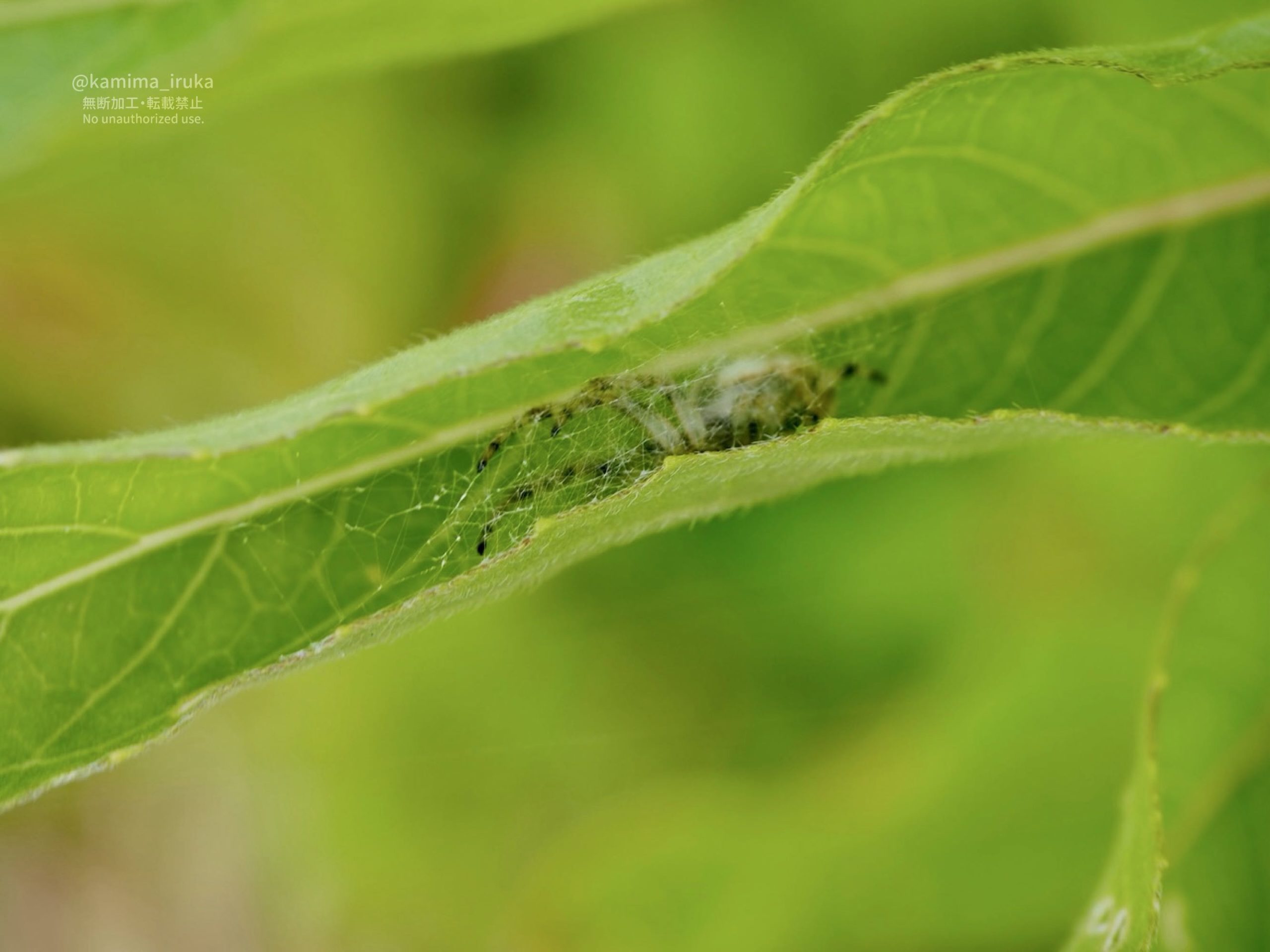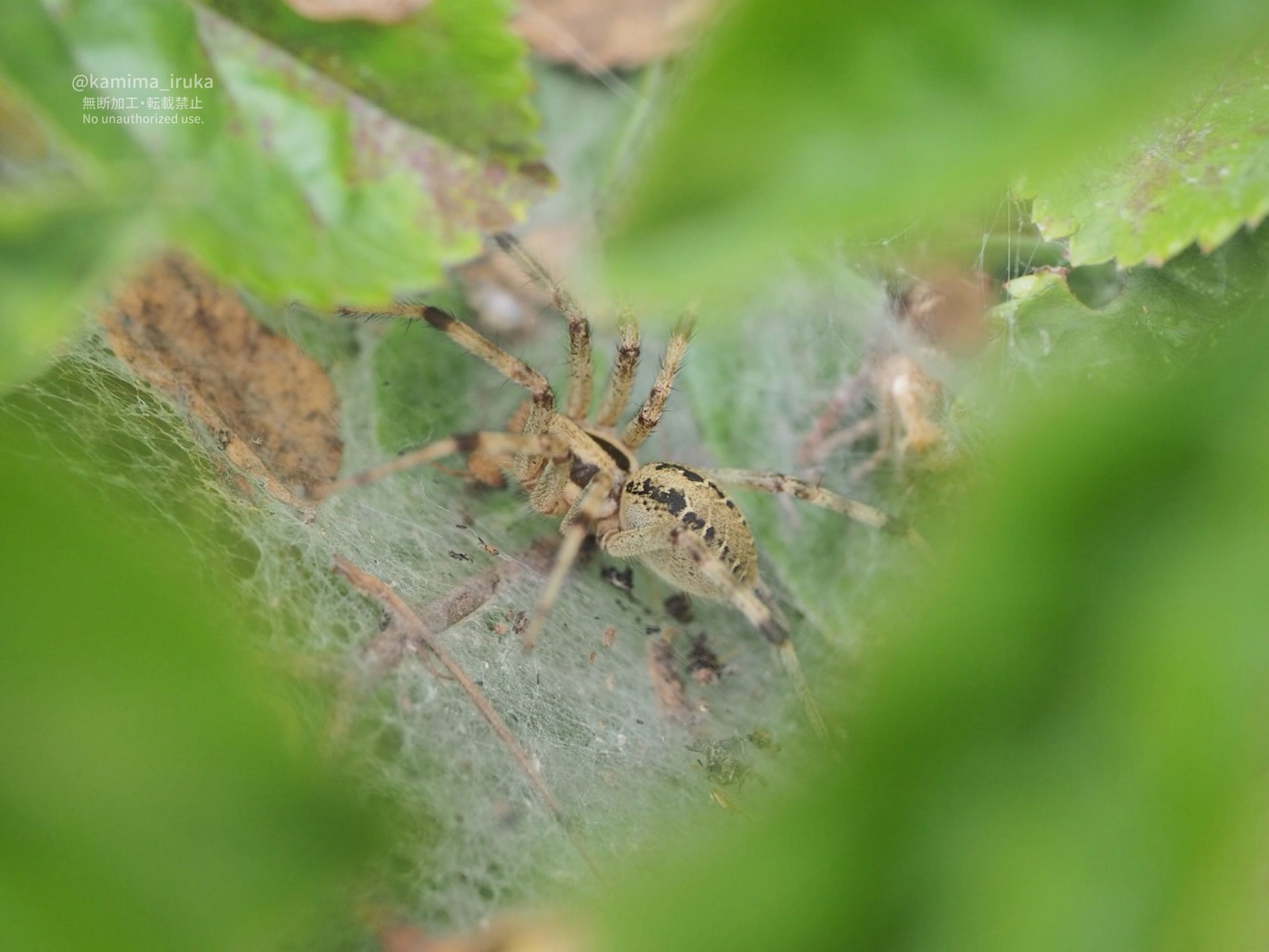 葉っぱの隙間から覗いてみるクサグモちゃん