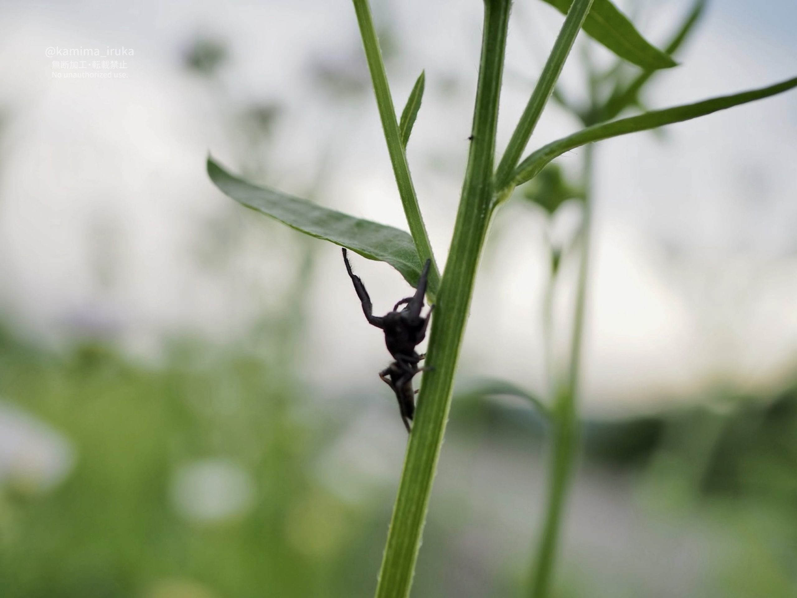 お住まいなのはたぶんヤハズハエトリちゃんとかだと思うんですが、覗きこんだらサッと隠れてしまい…(そのためのおうちなので、それはそう)