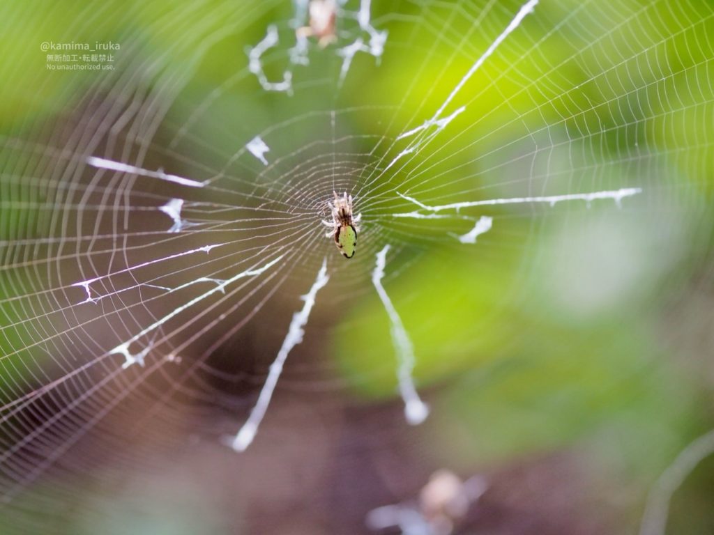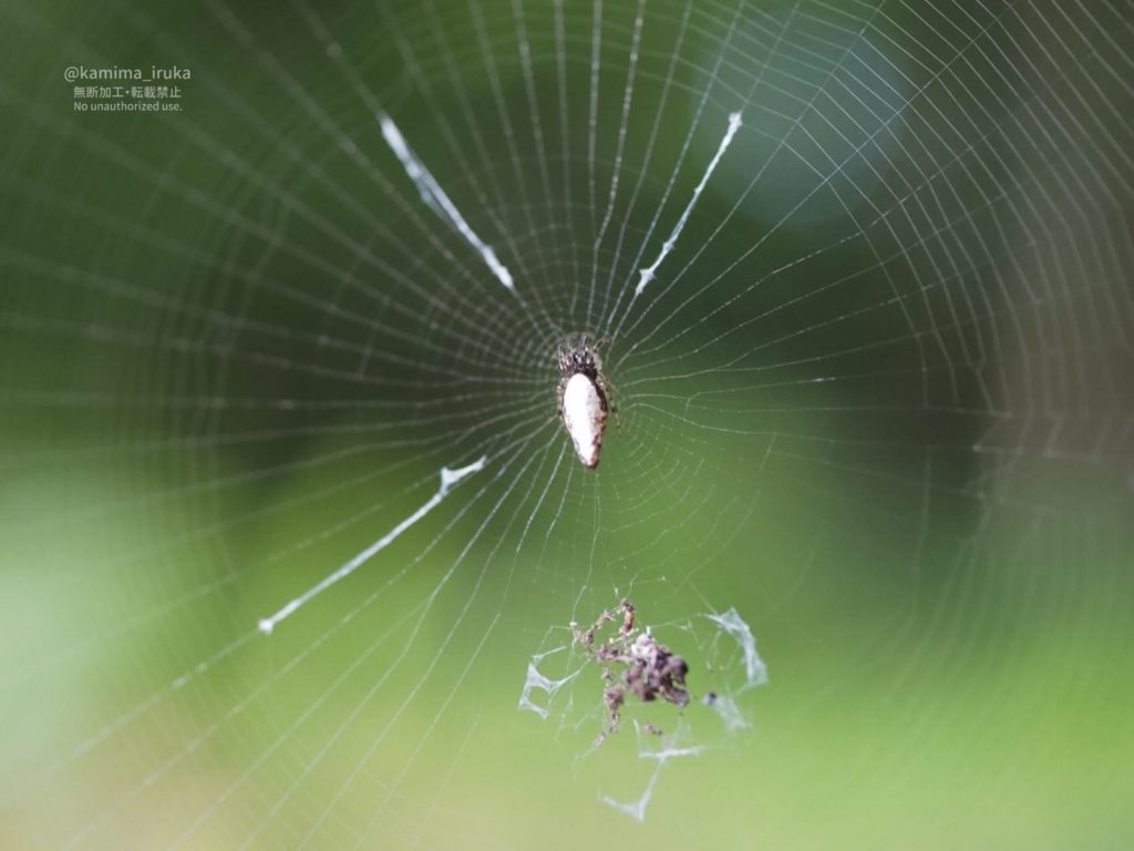 ギンメッキゴミグモちゃんがたくさん! 放射状の隠れ帯にも個性があってカワイイネエ…。