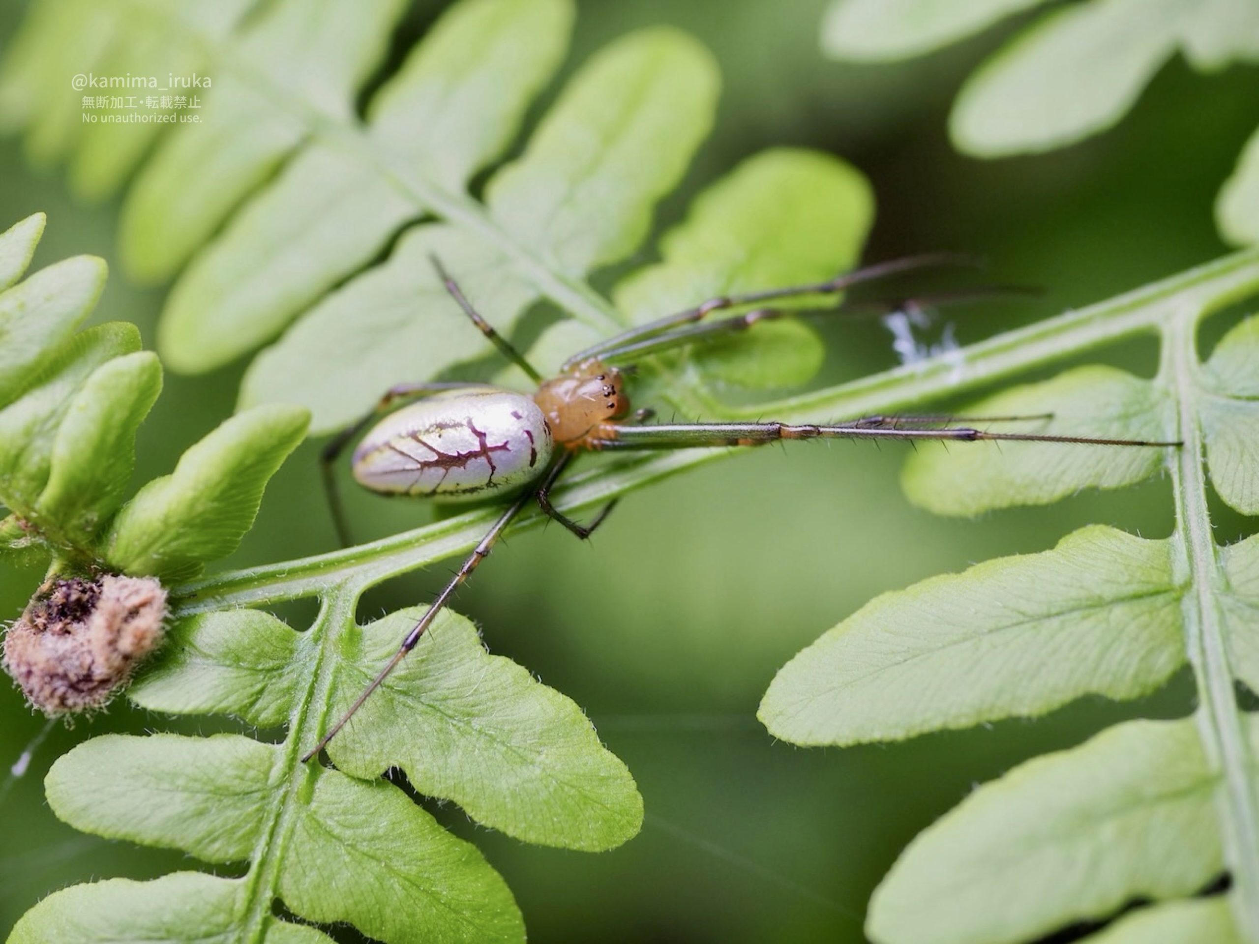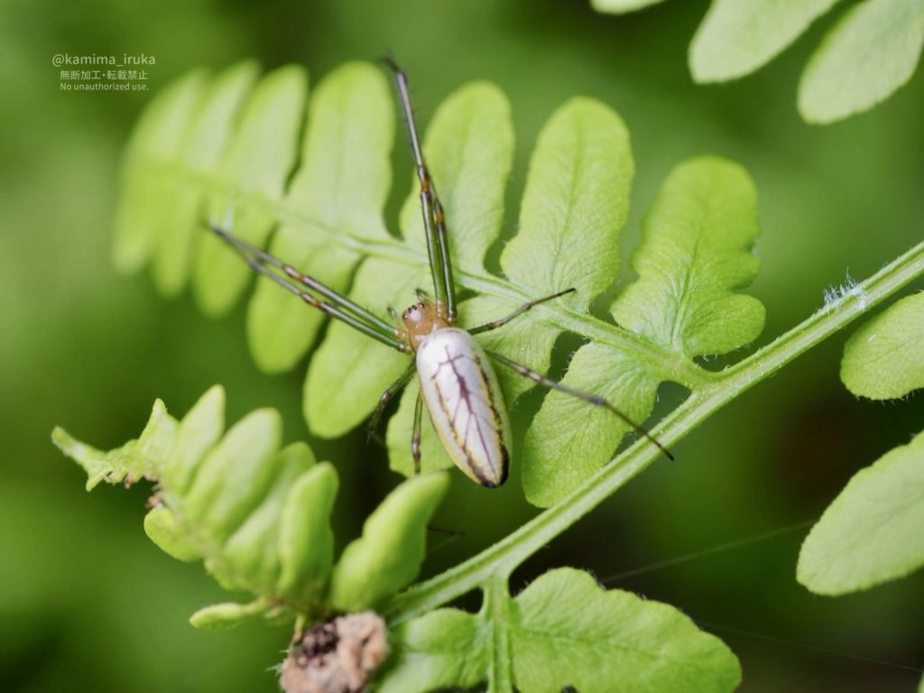 葉っぱの上で休憩中?だったのはオオシロカネグモさん。