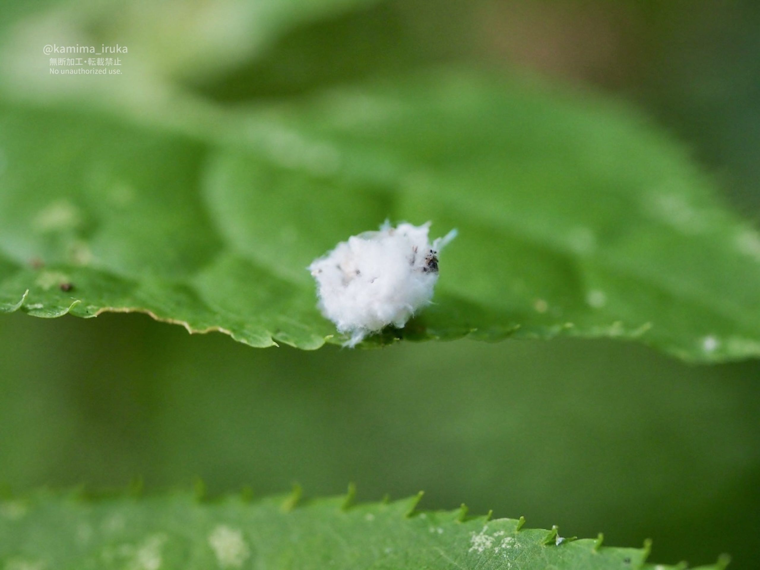 近くにアオバハゴロモ幼虫のみんなたちがモフモフしていたので、そこからロウ物質をもらって背負ってるのかな〜?