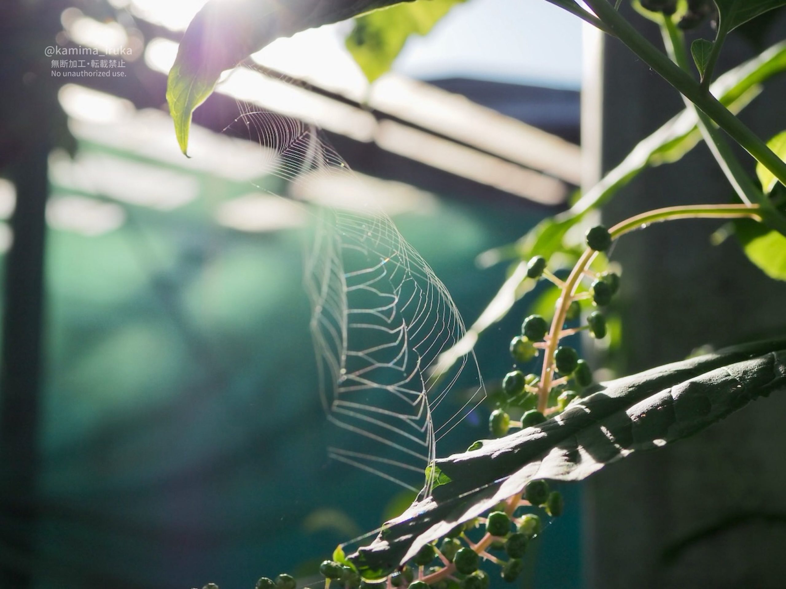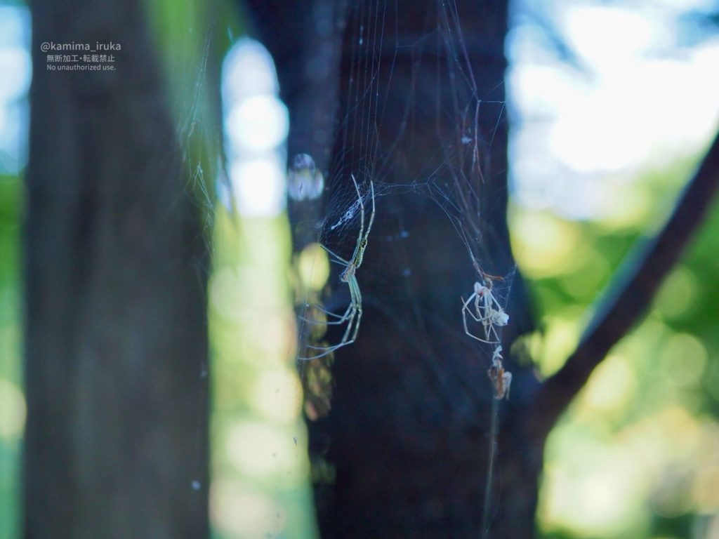 ジョロウグモ幼体ちゃんたちが独り立ちして、草の隙間に見事な三重網をはっていますね。