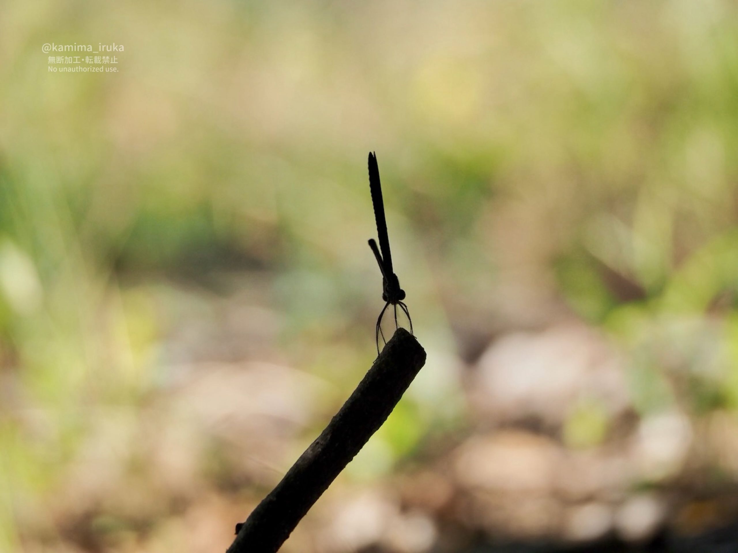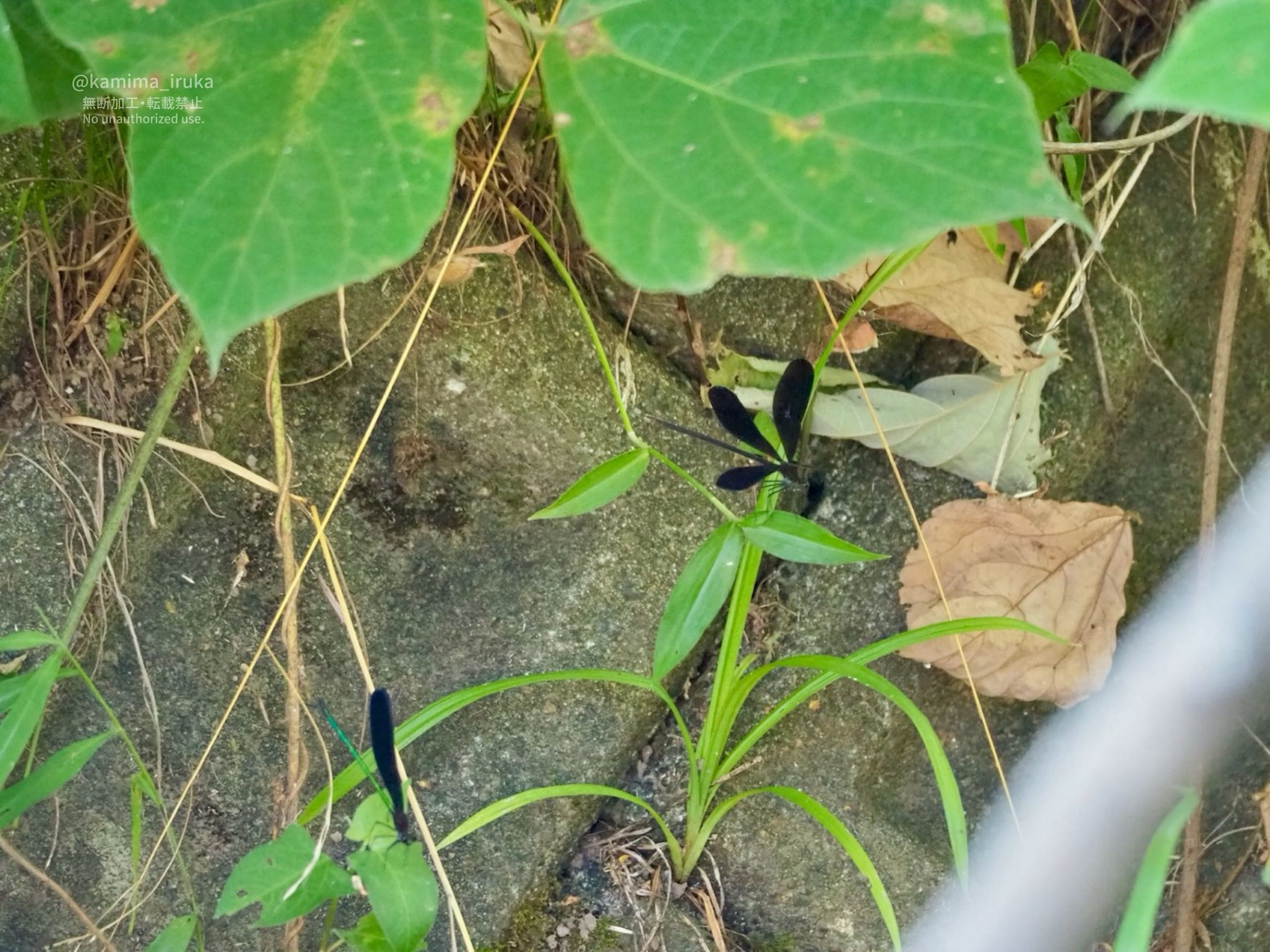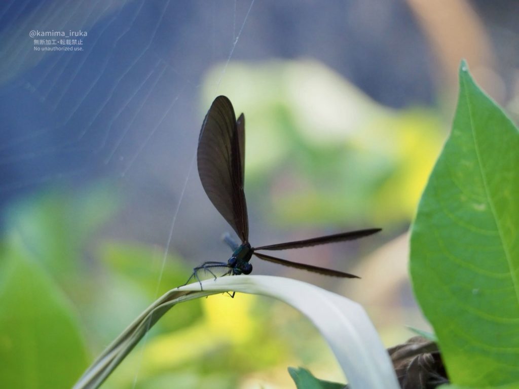 他のトンボみたいにスイーーッと飛ばずに、マットな黒い翅をヒラヒラさせて飛ぶのが、何ともエレガントで好きですねえ〜