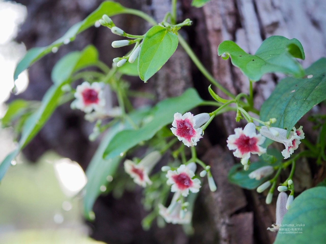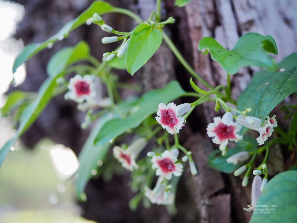 ヤイトバナが木や草に絡まりながら、可憐な花を咲かせておりました。