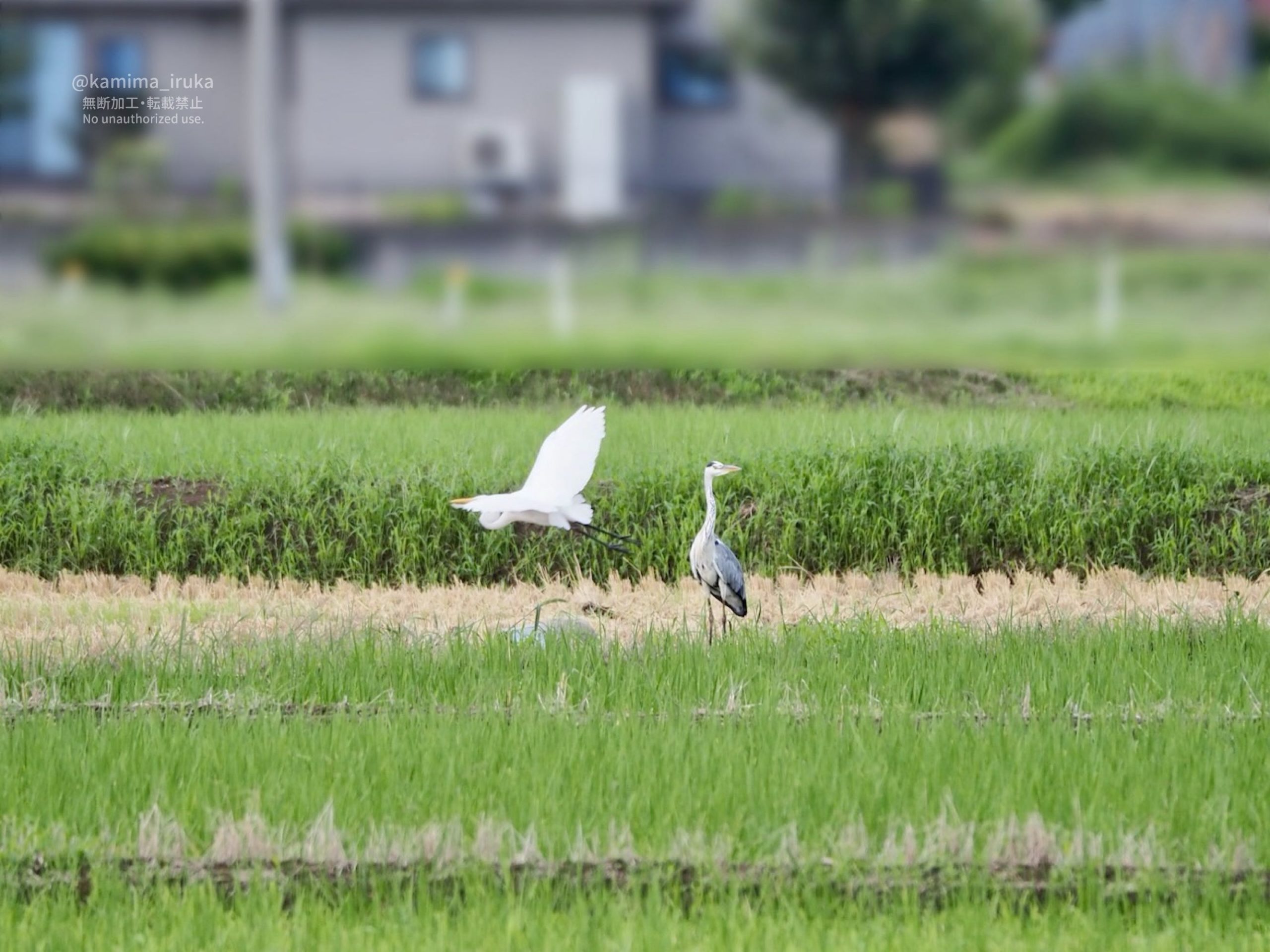 ニンゲンに気付いてスイーッと飛び去ったら、アオサギパイセンとすれ違い(パイセン無反応)