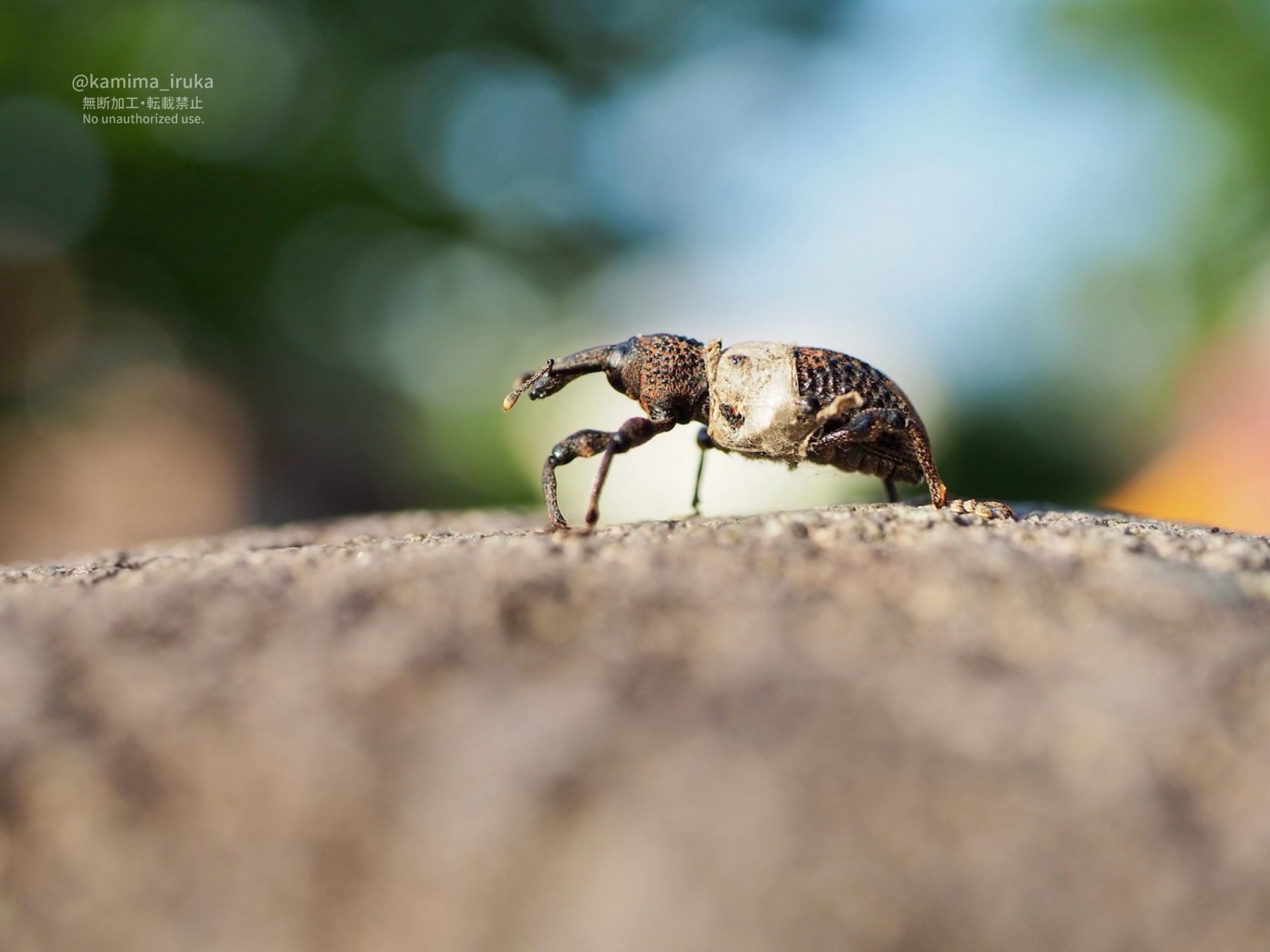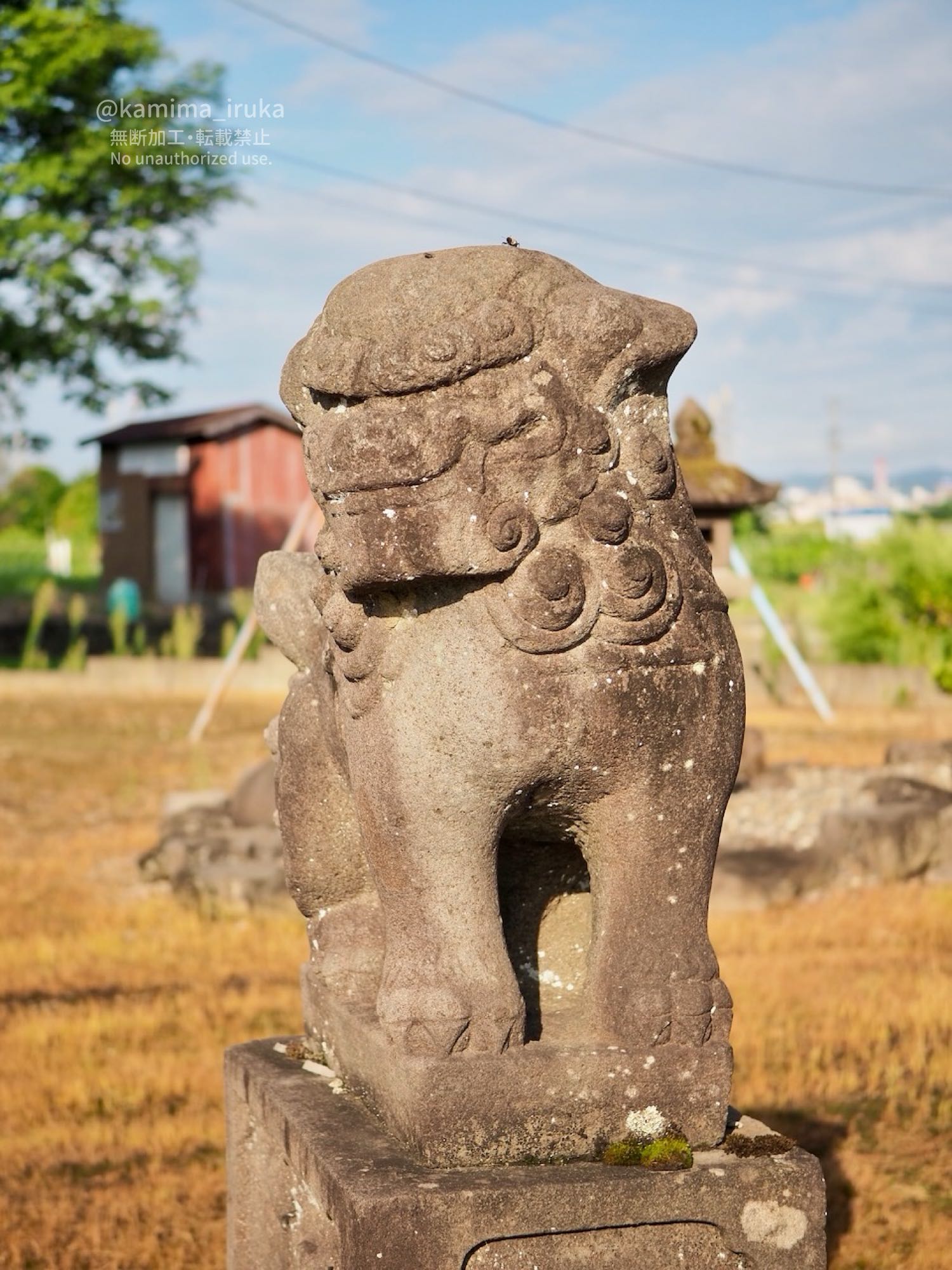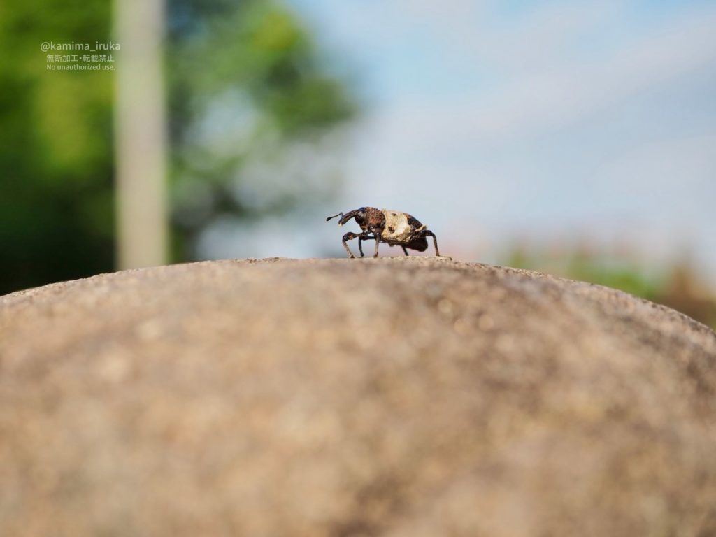 狛犬さんの頭になんか乗っかってるな…と思ったら、ゾウムシくん?